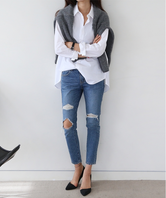 La chemise immaculée sera quant à elle idéale pour réchauffer un short un brin court. Elle pourra également se porter décolletée au contact d'un jean mom ou se glisser déboutonnée et croisée dans une jupe (ou au sein d'un jean taille haute). Elle remplacera par ailleurs habilement un tee-shirt lorsqu'il s'agira d'accompagner une salopette.