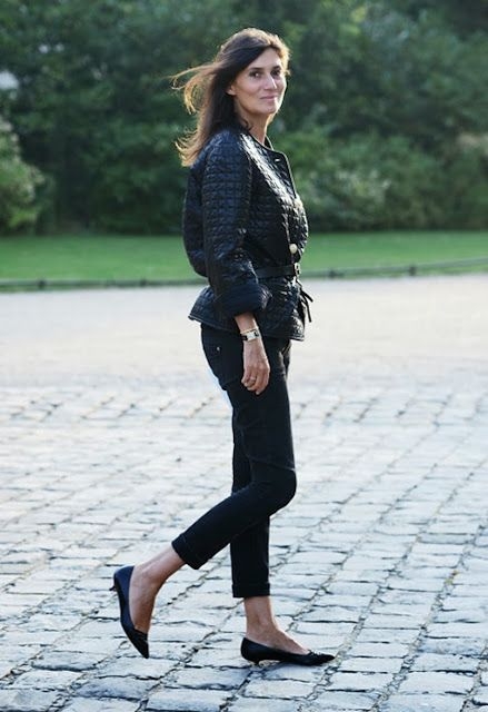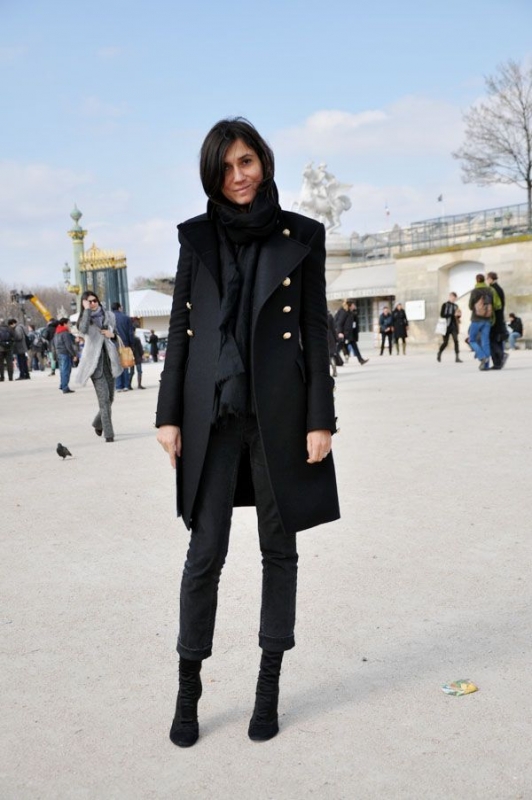 Et si cette brune longiligne excelle dans l'art de twister une tenue casual à coups de talons hauts et ceinture comme personne ses divers manteaux et vestes, elle est également experte en matière de total look noir. Quelles que soient les tendances du moment, elle arrive en effet à se composer des tenues carbones monochromes proche de la perfection (voir ici, ici et là).