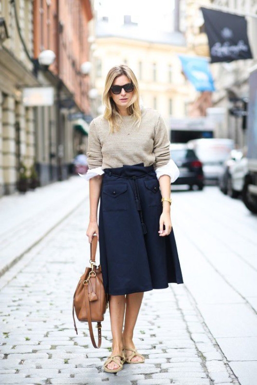 Mais avec un pull fin, une large ceinture, une jupe taille haute trapèze midi et une paire de bottines à talons, une femme de 30/40 ans peut s'en sortir, non ?