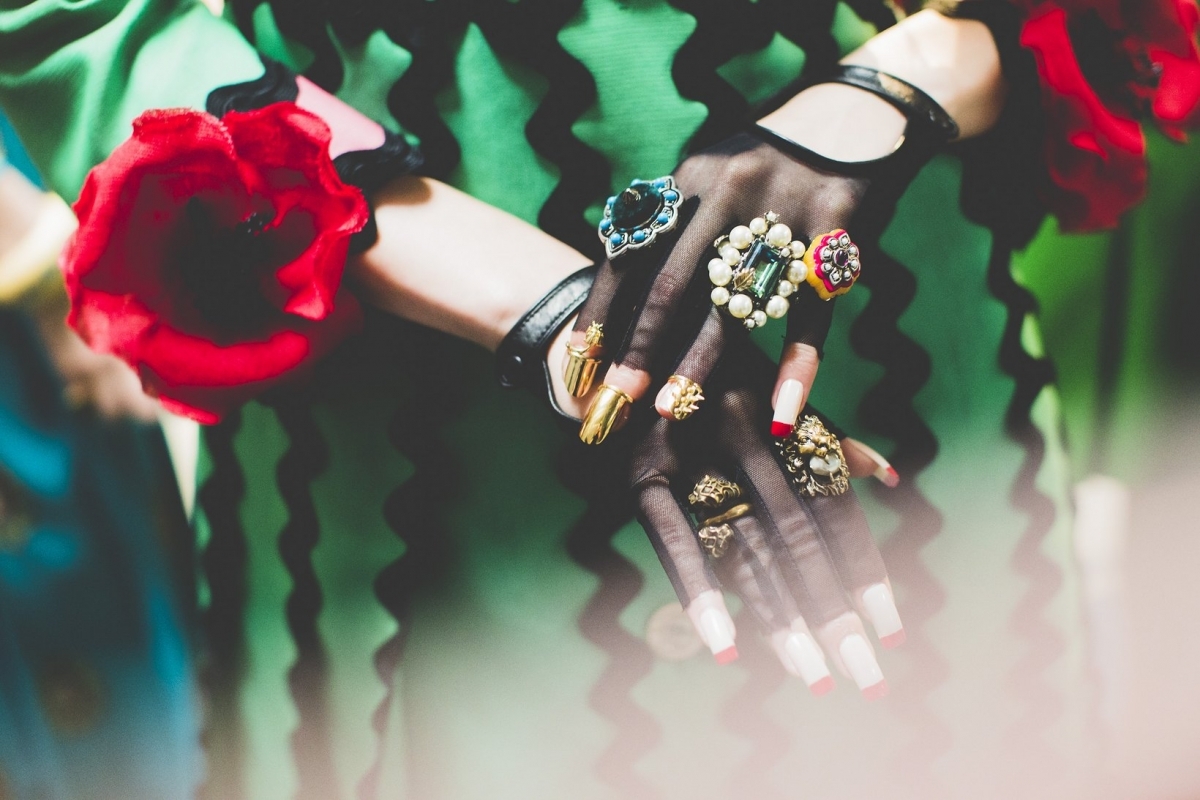 En matière de chemises, le style Laura Ingalls fit fureur (voir ici et là). Sur les catwalks et à leurs abords, deux tendances capillaires firent rage, avec d'un côté les jusqu'au-boutistes arborant le cheveux ultra court (voir ici, ici, ici et là) et de l'autre les belles assumant enfin leurs boucles naturelles (voir ici, ici, ici et là). Après avoir imprégné la campagne Dolce&Gabbana automne/hiver 2015-2016, la folie du selfie s'invita cette fois-ci sur le catwalk de la griffe italienne. Sur le podium Dolce&Gabbana, les casques audio se firent plus bucoliques que jamais (voir ici). Entre top brodé Dries Van Noten et chino oversize, Anna Dello Russo fit un sans-faute (voir ici). Chez Missoni, le retour en grâce des Converses se confirme (voir ici). A Milan, on sait être sexy sans être vulgaire (voir ici).