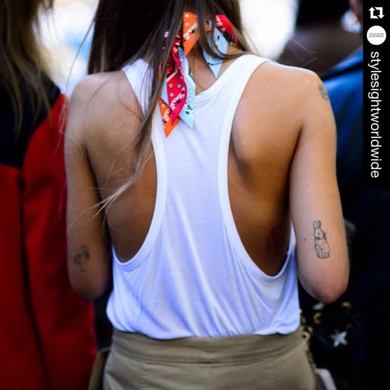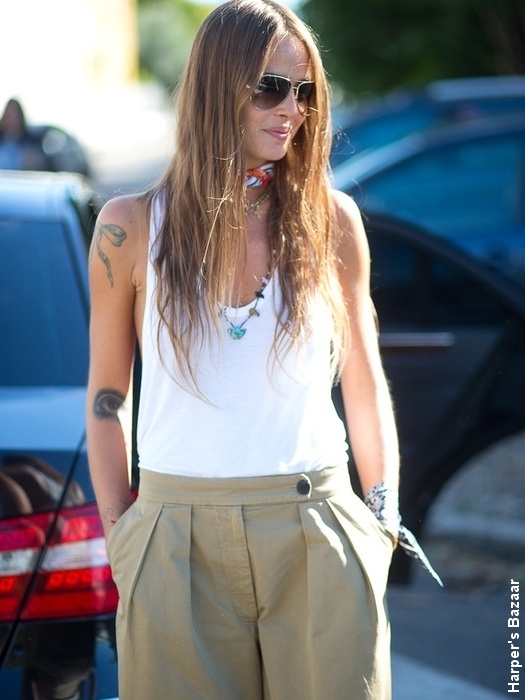 Se faire tatouer à des endroits insolites et stratégiques (voir ici et là). Insuffler de l'allure au tandem pull vert forêt/pantalon mastic en choisissant l'un étroit et l'autre large et taille haute (voir ici). Apaiser une micro jupe en la mariant à une chemise en jean sagement boutonnée (voir ici). Télescoper les genres en associant tenue girly et chapeau masculin ou blouson teddy et robe chic en dentelle (voir ici et là). User et abuser des foulards en les portant en ceinture, bracelet, collier ou grigri de sac… (voir ici, ici et là). Faire des blousons teddy funky son arme secrète pour booster n'importe quel look (voir ici, ici, ici et là).