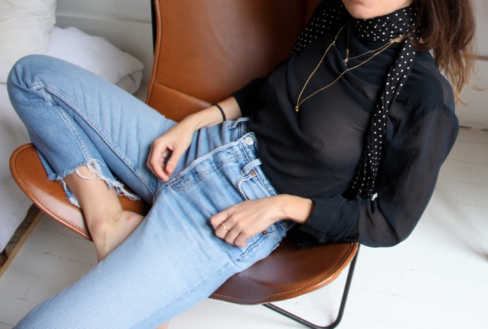 Depuis quelques semaines, on peut en effet constater que les filles surfant sur l'air du temps sont nombreuses à arborer des bas de jeans découpés asymétriquement, l'idée étant de défaire la couture externe dudit jean sur 5-6 cm et de découper ensuite parallèlement au sol la partie se trouvant sur le devant de la jambe. En fonction du type de souliers choisi pour accompagner ce jean customisé, la hauteur de la découpe pourra varier.
