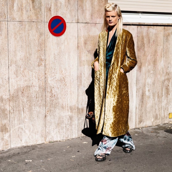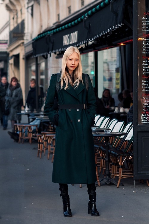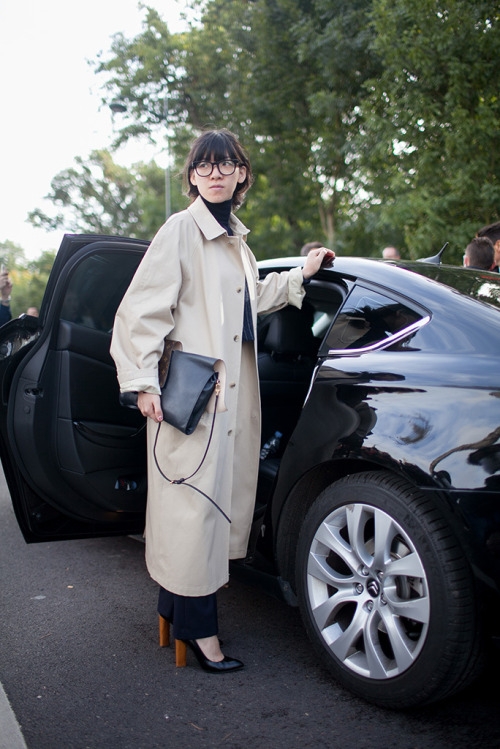 Un brin rétro mais infiniment élégant, le trio escarpins/ample manteau long/long gant de cuir faisant légèrement bouffer les manches est à consommer sans modération. On pense à porter le col de ses pardessus en mode Dries Van Noten.