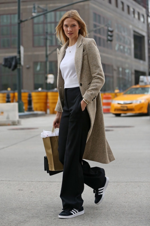 Le duo manteau long/pantalon extra large fonctionne à merveille, à condition d'afficher plus d'1m70. Dans le cas contraire, les talons s'imposent. Choisi dans une couleur vive, le manteau semi-long n'aura pas son pareil pour rehausser les looks d'hiver, éviter de se faire renverser par un bus, redonner le sourire aux vieux messieurs et rendre jalouses toutes celles ayant opté pour un caban bleu marine (voir ici). Le duo pantalon large/basket a le don pour injecter aux manteaux longs une dégaine casual/classique (voir ici). On n'hésite pas à glisser notre blouson à capuche sous un trench long. On le portera de préférence avec un pantalon cigarette et une paire de talons, afin de pallier le léger manque de féminité de ce duo. Ceinturé taille haute, le manteau long gagne en élégance (Stella McCartney). On pense à dérider nos manteaux ¾ en cousant une large bande de fausse fourrure à 3 cm du bord de la manche (Fendi). Cet automne, on n'hésite pas à marier la couleur de son pardessus à celle de ses baskets. Le manteau long fonctionne à merveille avec le gimmick du pantalon roulotté sur la cheville (voir ici). Les robes midi en maille apprécieront de se lover dans un manteau ¾ masculin, de manière à créer un contraste visuel flatteur (voir ici). Ceinturer son manteau est une bonne alternative au boutonnage. On note également que le col relevé permet d'injecter un supplément d'âme à la silhouette. Ample et long, ce genre de manteau s'avère idéal pour jouer les cimaises arty. Les pardessus un brin ennuyeux ne devront pas hésiter à se parer d'écussons en tous genres. Le duvet portatif n'est pas une option esthétiquement viable... (Moschino).