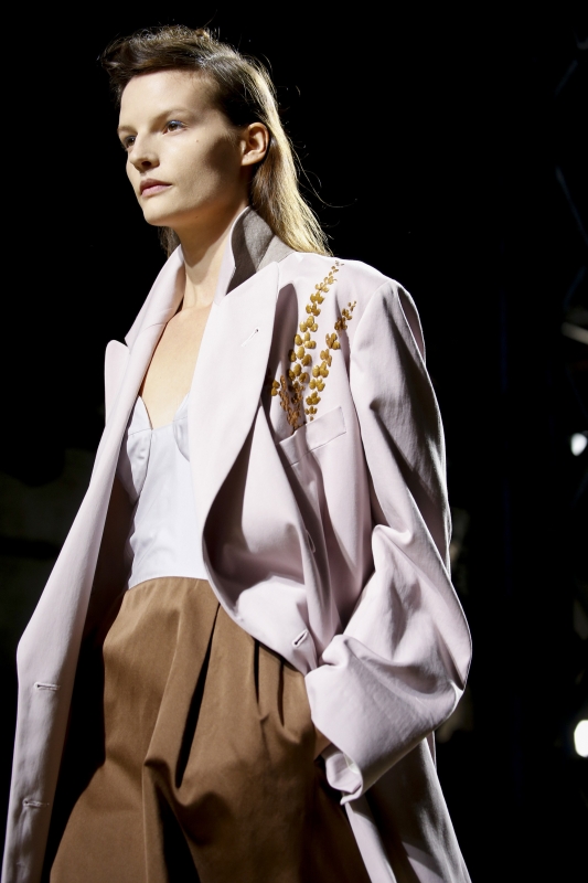 En décidant de télescoper coloris army et teintes plus féminines, Dries Van Noten crée d'heureux entrechocs, apaisant la nature des uns et exaltant celle des autres. On traitera ici le kaki et le violet sur un plan d'égalité, avant de pigmenter le tout d'un éclair de rose thé potentiellement scintillant.