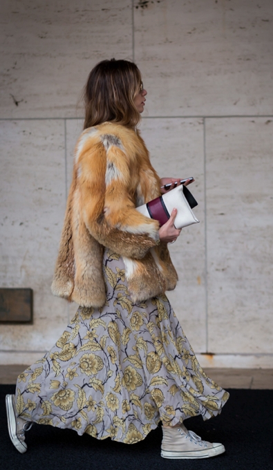 L'humeur a beau être aux mix and match seventies, certaines associations n'en sont pas moins à éviter, sous peine d'apparaître déguisée, voire négligée. On pense notamment à la tenue gilet en fourrure, longue robe fleurie et baskets blanches grisonnantes. Faussement cool et trop premier degré, ce look gagnera à se voir dépareiller.
