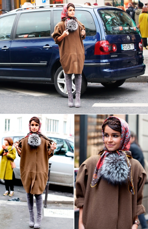 Alors la ... Autant ai je apprécie le style Carlotta Oddi autant les les looks de cette ravissante petite Miroslava me laissent - au mieux ... De marbre ...que dire du manteau boule des cuissardes et du foulard noué en fichu ...si ce n est que cette fille serait jolie avec un sac de pommes de terre en guise de toilette.... Ceci étant, comme le souligne Clao, elle ne fait pas suiveuse et affirme sa personnalité ...
