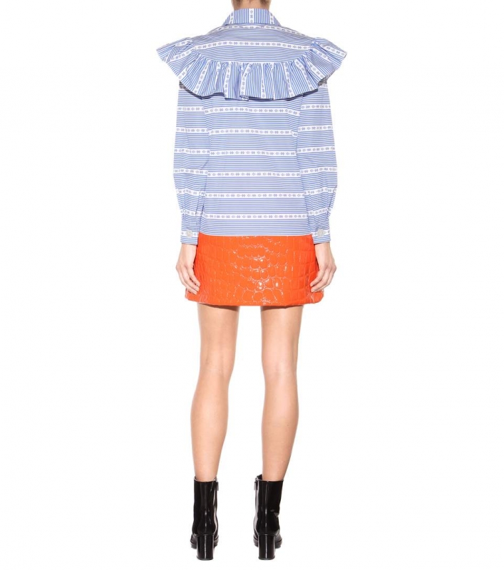 Avec sa double rangée de volants et sa découpe girly, son chambray italien (qui offre une douce alternative au denim un brin rêche de nos habituelles chemises en jean), sa dimension Laura Ingalls parfaitement maîtrisée ou encore sa fausse casualness lui permettant de s'acclimater à moult dress codes, le modèle Stevy de chez APC apparaît en effet tout indiqué pour évoquer subtilement la fantaisie Miu Miu.