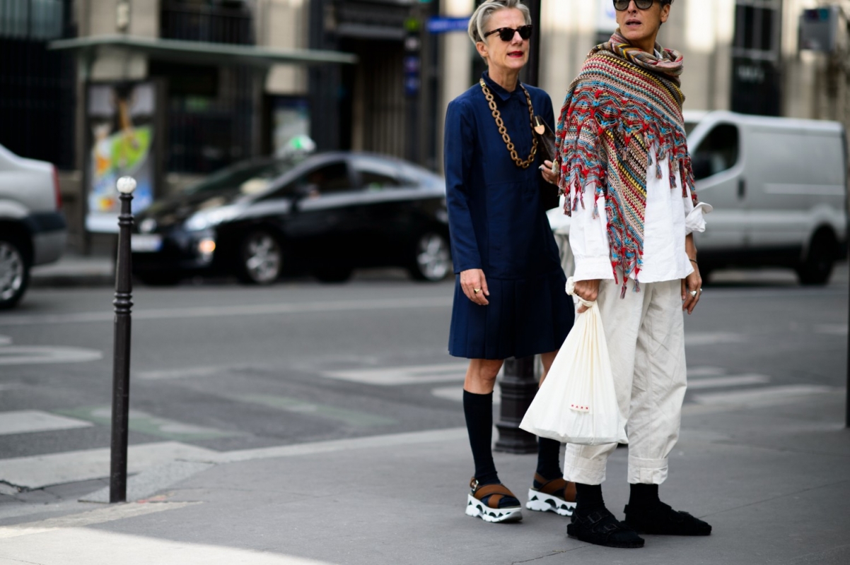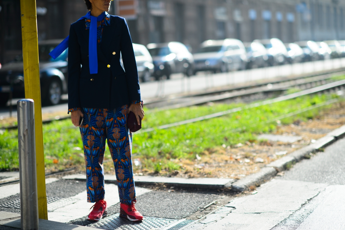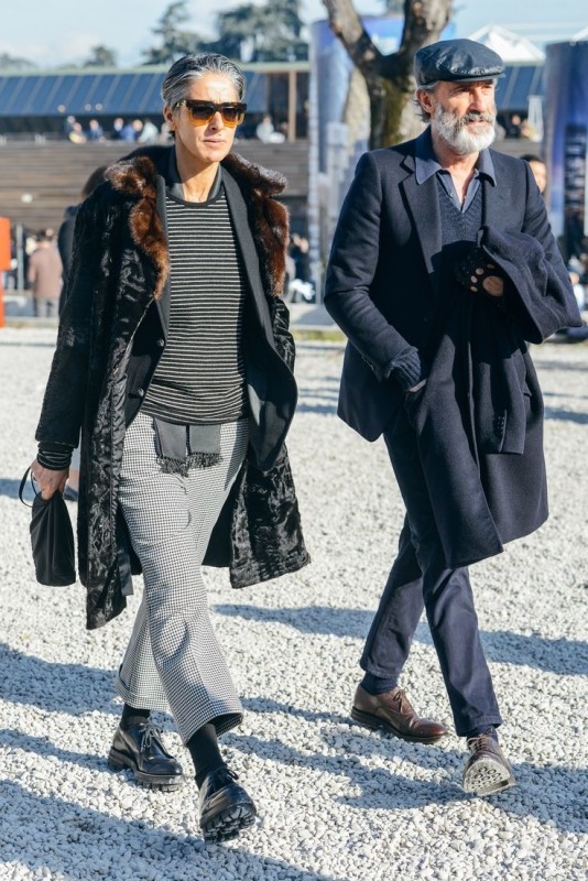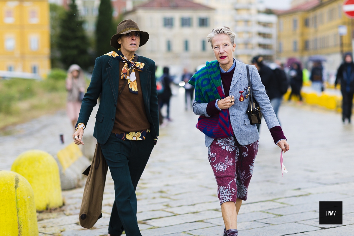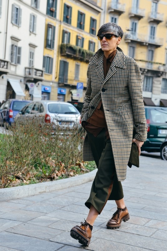 Associer pantalon ⅞ et brogues à semelles épaisses (voir ici). Télescoper chemise vichy et blazer de marin (voir ici). Réchauffer une tenue casual/masculin au contact d'un châle folklorique (voir ici et là). Relever le mix vert foret/marron d'une pointe de jaune (voir ici). Faire la part belle aux pantalons larges ⅞ (voir ici et là). Réhausser l'ensemble marron/vert bouteille via d'une pièce mêlant les deux coloris (voir ici). Mixer différents imprimés noir et blanc (voir ici).