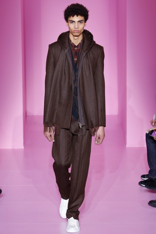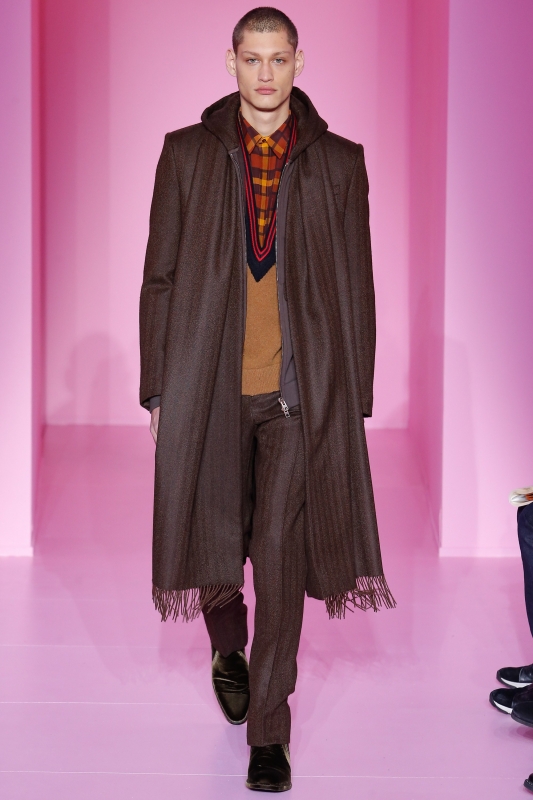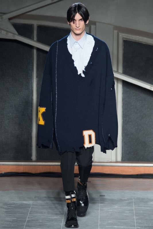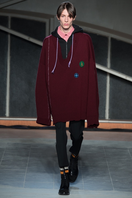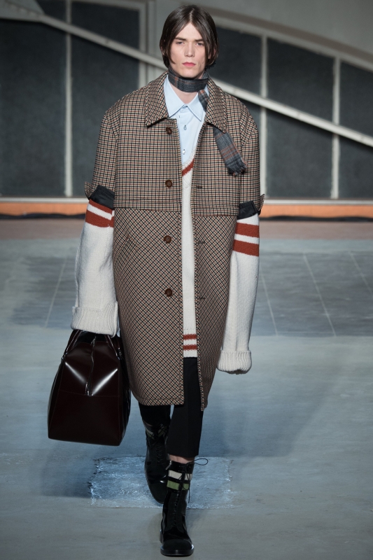 Le conseil donné par Raf Simons cette saison ? Laisser les mites dévorer nos pull-overs... (voir ici). Les manches des manteaux se raccourcissent dangereusement, tandis que celles des pulls ne cessent de s'allonger (voir ici). Pull oversize distendu, veste zippée à capuche et chemise vichy composent un insolent trio (voir ici).