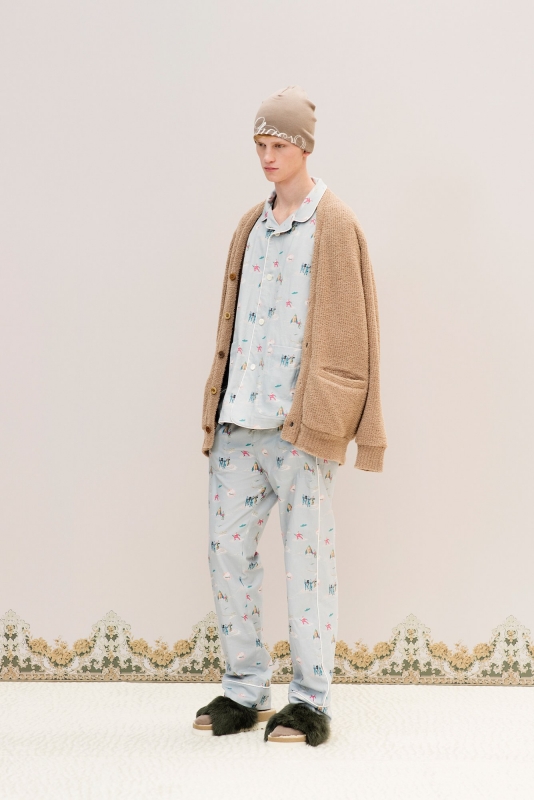 On aimerait croire à la portabilité "In real life" du look pyjama de chez Undercover (voir ici). Le pantalon large se porte resserré à la taille par une ceinture façon obi (Umit Benan). Le foulard/écharpe se noue à la manière de ceux de chez Officine Générale (voir ici). La chemise en jean se glisse sous un pull sans manches (APC).