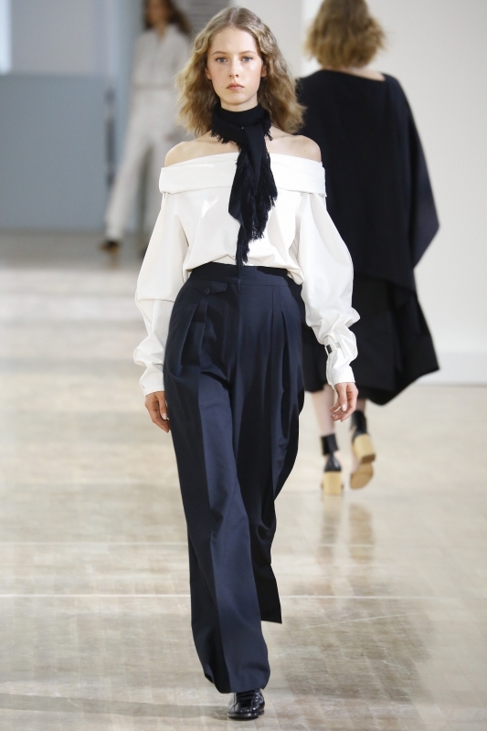 Infiniment féminin sans pour autant être dénué d'une pointe de masculinité, le pantalon large taille haute esprit années 40 fait cette saison le miel des créateurs n'aimant rien mieux que les silhouettes à l'allure folle mais maîtrisée. On pense tout particulièrement à Dries Van Noten, qui propose de fabuleux pantalons à la taille resserrée et pourvus de larges plis (voir ici et là), le tout offrant une élégante ampleur à ces pièces satinées pour gentlewoman audacieuse. De leur côté, Marc Jacobs et Christophe Lemaire optent pour une version plus classique bleu marine à plis plats et jambes larges.