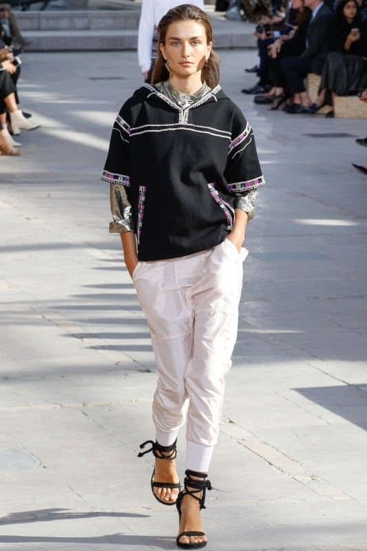 Au sein d'une société où la valeur sport prend de plus en plus d'importance, il n'est guère étonnant de voir l'esthétique sportswear influencer fortement ceux chargés d'imaginer la garde-robe de la femme de l'été 2016. Et si le pantalon de jogging s'invite ainsi cette saison au sein de nombreuses collections, on est loin de son homonyme en molleton gris ayant fait fureur il y a quelques années : le jogging n'est ici qu'un prétexte pour s'amuser autour des codes du sportswear. C'est ainsi que chez Louis Vuitton, Nicolas Ghesquière imagine une version ultra technique aux allures de patchwork pour accro au spinning, que chez Tommy Hilfiger le jogging esprit Adidas se décline en daim brodé, tandis que chez Isabel Marant on fusionne texture légère et bord-côte enserrant la cheville. Plus sobre, la version Chloé du fameux jogging "trois bandes" ne manque quant à elle pas de "seventies appeal".