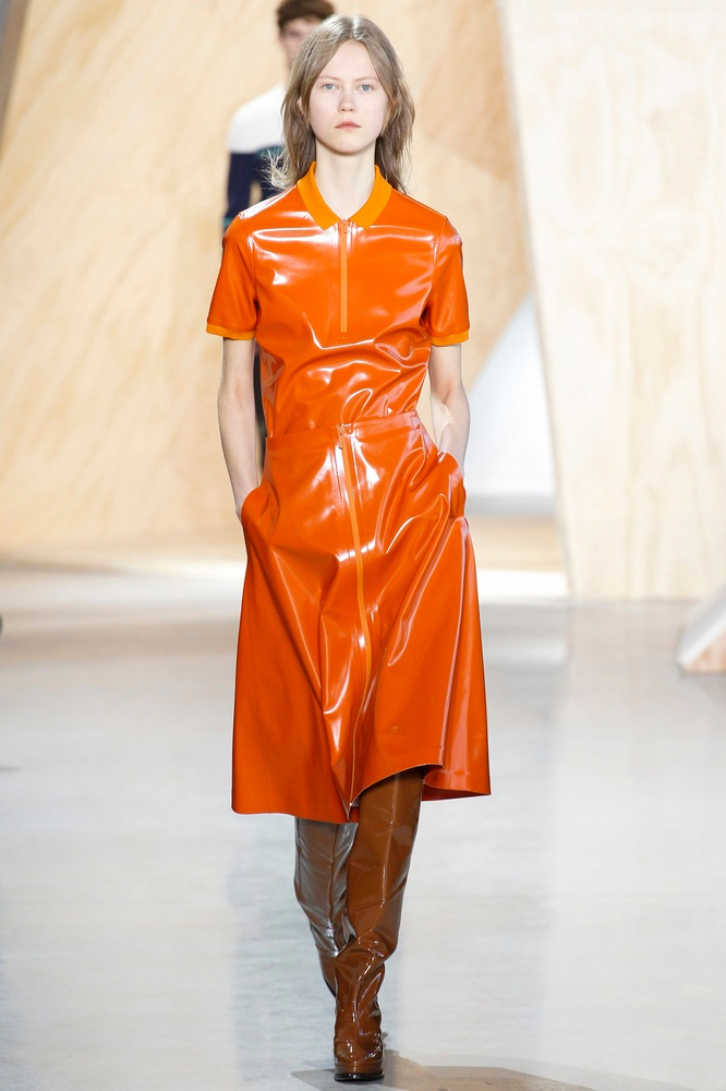 Point de vue dress code, le défilé Lacoste est rempli de gimmicks à s'approprier sur-le-champ. On pensera ainsi à relever en collerette nos cols dézippés, à associer pull camionneur et pull col roulé, à glisser sous nos blousons un pull à col montant zippé ou encore à marier orange et marron (ou bleu canard et kaki). Il semblerait également qu'il soit l'heure de ressortir nos pull-overs péplum...