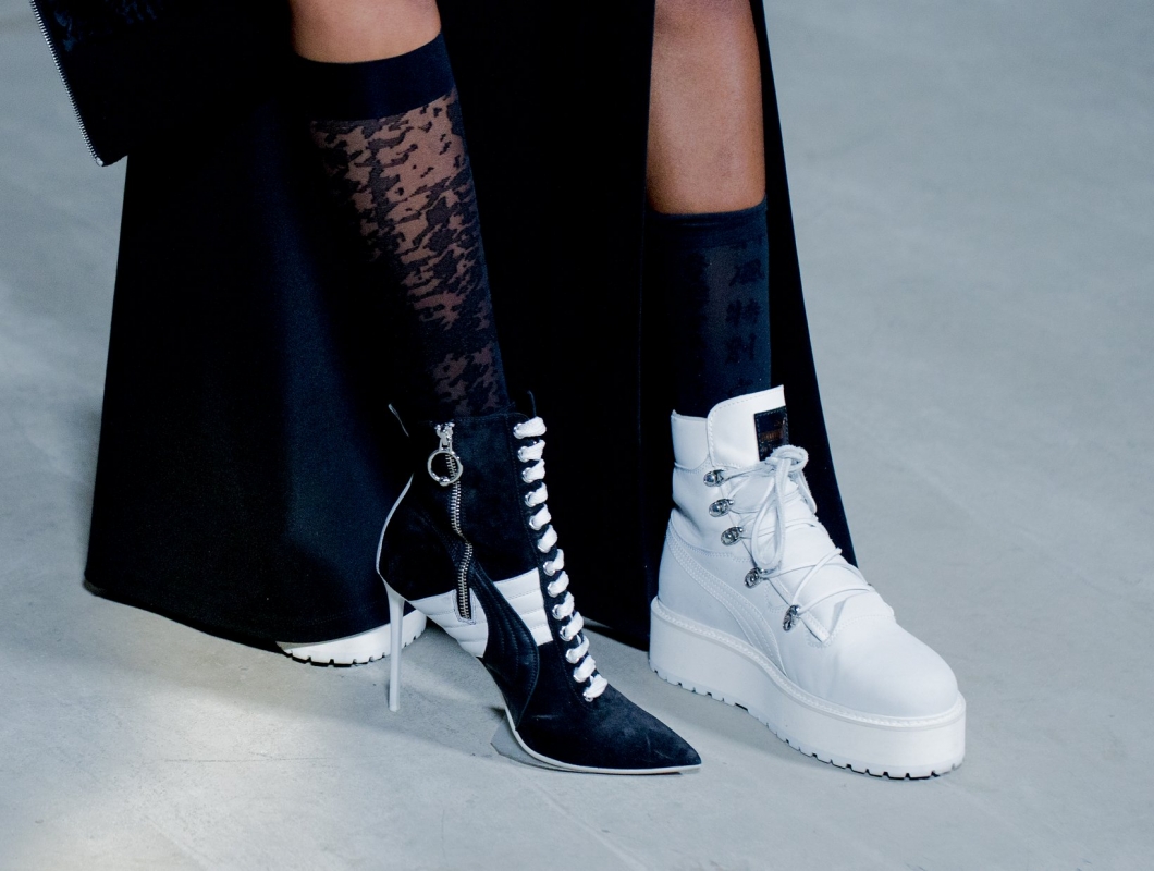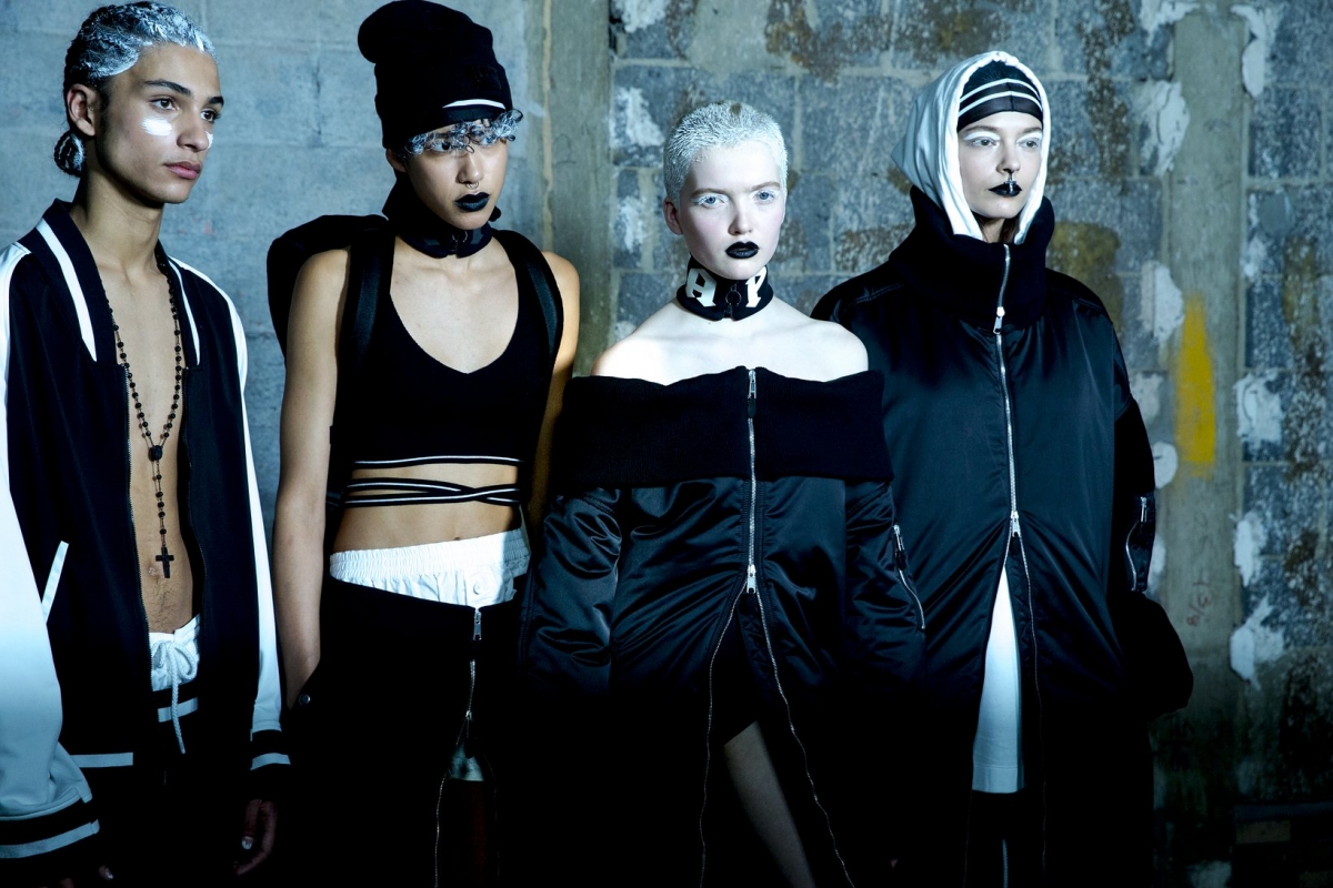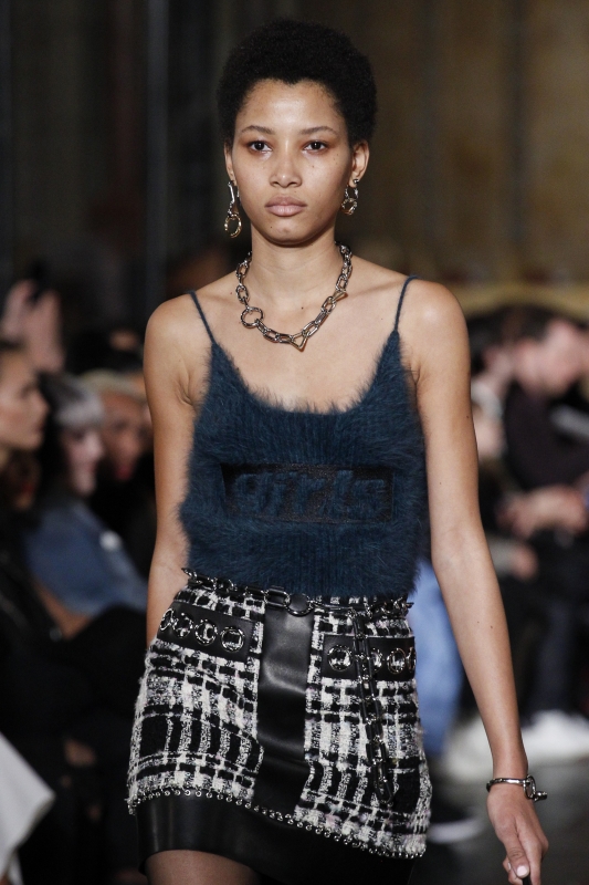 Véritable condensé du vestiaire de Rihanna, la collection Fenty x Puma imaginée par la chanteuse oscille entre esprit streetwear, dégaine hip-hop et emprunts à ses griffes de prédilections (Alexander Wang, Givenchy, Vetements…). Rien d'exceptionnel donc, mais qu'importe : Rihanna fait vendre. Il se pourrait d'ailleurs que sous l'influence de l'interprète de l'album "Anti", les baskets à talons aiguilles reviennent bientôt hanter les pavés urbains… La coupe courte de Ruth Bell continue de séduire les designers, qui sont nombreux à avoir fait appel à elle (voir ici, ici et là). La ceinture bandana du show Altuzarra a tout du DIY facile à réaliser (voir ici). Binx Walton s'essaie au blond (voir ici). Entre les déclarations mégalomaniaques de Kanye West (qui se verrait bien - entre autres - prendre la direction artistique de la maison Hermès), le fait qu'Anna Wintour fut placée juste à côté de Kim Kardashian et la mise en scène faisant référence au génocide rwandais, difficile de savoir ce qui fut le plus dérangeant lors de la présentation de "Yeezy 3"... Le show Yeezy raconté par une de ses figurantes : voir ici. Pour son dernier défilé, Alexander Wang s'amuse à prendre le contrepied de la notion de "bon goût". Il convoque pour cela l'univers goth/punk/sexy/sporty qui lui est cher et y puise de quoi constituer une garde-robe éclectique où le tweed se pare de cuir et de piercings, où la dentelle se mue en feuilles de cannabis, où les bonnets se parent d'inscriptions, où les vestes en jean assument une doublure hirsute et où les détails SM affluent. Et si cette collection se révèle parfaitement cohérente, elle aurait cependant plus sa place chez H&M que chez Net-a-Porter... La gouache blanche, l'ultime produit de beauté ? (Fenty x Puma) Comme le souligne Imogen Fox dans le Guardian, les "bad girls" ont littéralement pris d'assaut les catwalks (Fenty x Puma, Alexander Wang, Adam Selman).