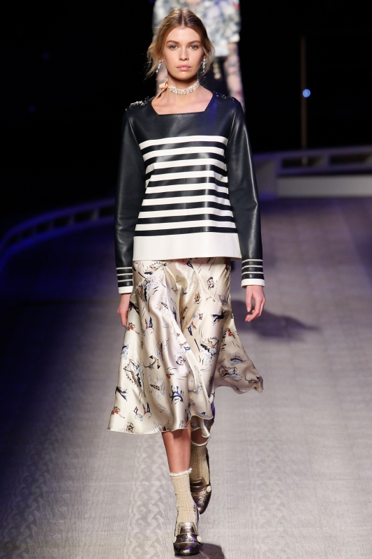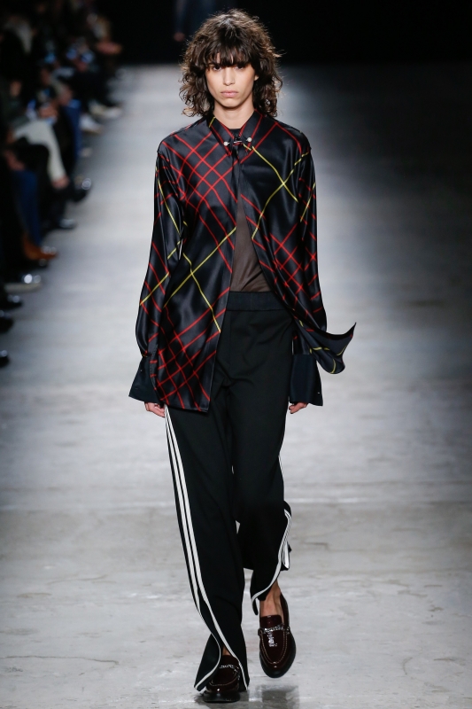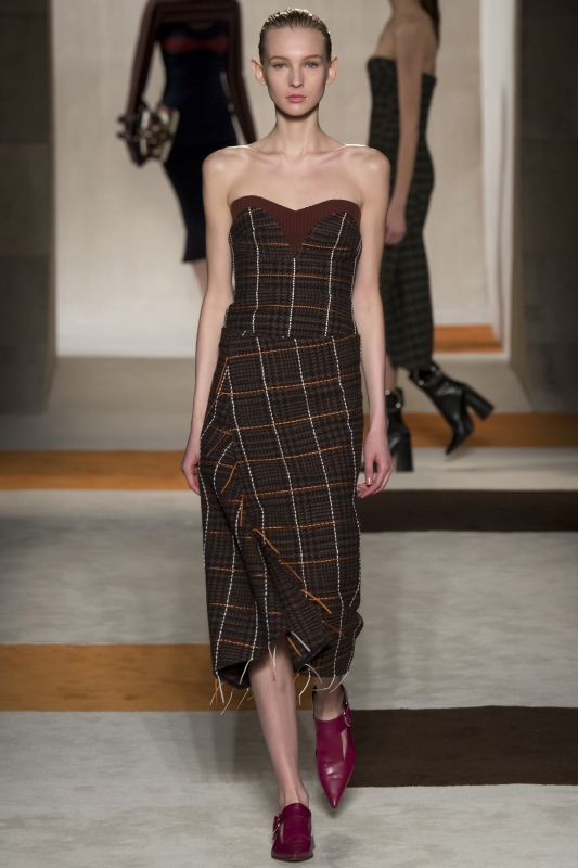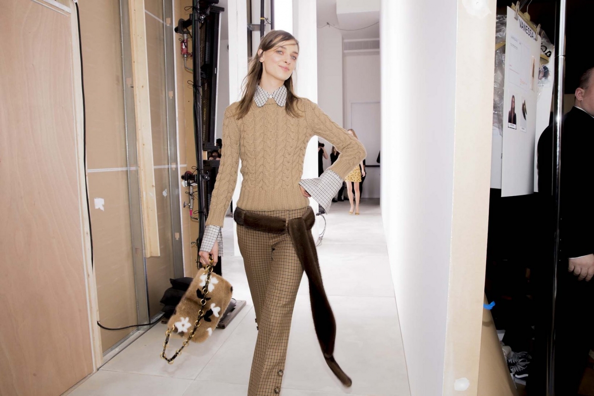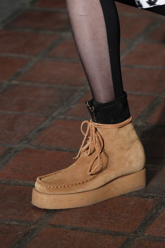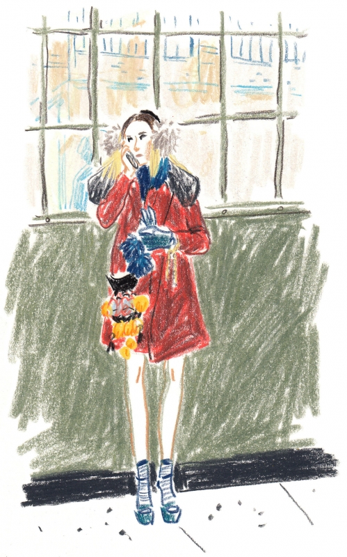 On laisse aux podiums le concept de la ceinture en fourrure (Michael Kors). Oubliés les longs cils de biche : l'humeur est désormais au regard englué (Jason Wu). L'installation de Rosie Assoulin lui aura valu une belle visibilité sur Instagram. En imaginant une version légèrement compensée de la desert boot, Alexander devrait rebooster la cote de cette dernière (voir ici). Nul doute que les affolantes robes d'Esmeralda ayant clôturé le show Altuzarra ne tarderont pas à se retrouver sur les tapis rouges de 2016... Placée en front row de nombreux shows, CL - chanteuse star coréenne - semble être en passe de devenir l'une des chouchoutes du fashion system. À quand le contrat d'égérie ? Mêlant manteaux parfaitement coupés et non dénués de caractères, pièces masculines revisitées en mode féminin et robes sexy aux allures de couvertures drapées, la dernière collection de Victoria Beckham allie confort et féminité. On note au passage qu'après s'être fortement inspirée du travail de Roland Mouret, la créatrice semble aujourd'hui bien plus proche du style de Phoebe Philo (il suffit pour s'en convaincre de jeter un oeil au look qu'elle arbora lors de son salut final). On retient l'idée du trait de lipstick rouge pour réhausser un look casualwear (Proenza Schouler). Diane Von Furstenberg troqua son traditionnel défilé contre une "présentation informelle" qui, si l'on en croit Cathy Horyn, tourna franchement au ridicule... Chez Mansur Gavriel, l'illustratrice - et petite amie de Scott Schuman - Jenny Walton joue les mannequins (voir ici). En mariant sous-pull à collerette, robe ajourée piquée de sequins et hautes bottes noires, Derek Lam offre au sous-pull un dress code diablement sexy (voir ici). C'est assises sur la moquette que les soeurs Olsen assistèrent à leur propre show (voir ici). Chez J.Crew, tout est une fois de plus dans le mix and match des styles, des coloris et des imprimés. Cette saison, c'est ainsi l'alliance entre gris souris, jaune pâle et lavande qui retient l'attention (voir ici).