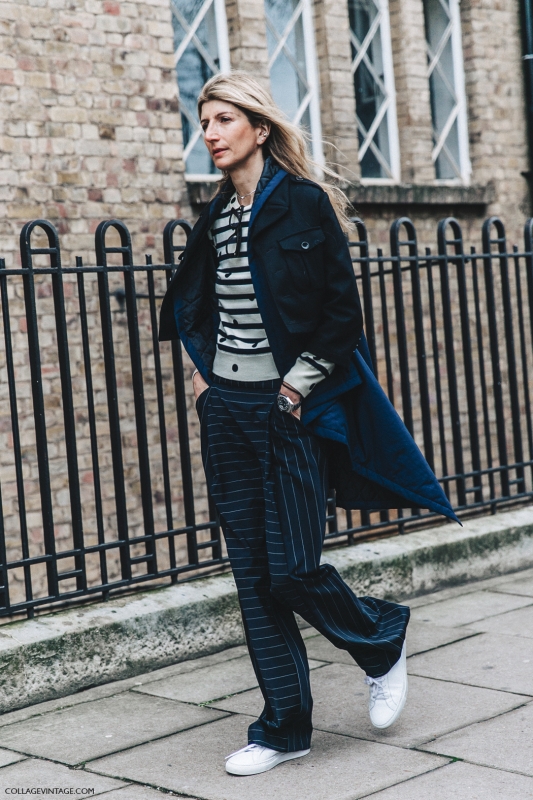 Emmener ses bambins assister aux défilés semble rentrer peu à peu dans les moeurs… (voir ici) Aussi alambiquées soient les silhouettes surréalistes de J.W.Anderson, nul doute que certaines de leurs composantes feront le miel des trend-setteuses. On pense notamment à cette jupe à froufrous chimiques, à cette autre aux allures de soucoupe volante végétale, mais aussi à ce pantalon de biker de l'espace. Naomi Campbell, inoxydable ? Chez Joseph, Louise Trotter sort des sentiers battus et emmène la griffe vers des horizons plus conceptuels que d'ordinaire (voir ici et là), tout en imaginant des pull-overs qui devraient rapidement venir remplir le carnet de commandes des acheteurs (voir ici et là). Jennifer Neyt a tout compris : pour attirer l'oeil des photographes sans pour autant se transformer en caricature fashion, il suffit de miser sur un manteau au style fort mais portable et sur la paire de souliers du moment (voir ici).
