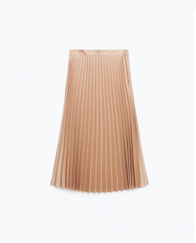On l'avait espéré, Zara l'a fait : une copie réussie de la fameuse robe Céline dos nu ayant tant séduit les chouchoutes de Tommy Ton (voir ici et là). Avec sa maille finement côtelée, son décolleté dorsal généreux, sa longueur midi et son tombé féminin, cette petite robe noire allie avec brio sobriété chic, souplesse sportswear et sensualité universelle. Seul bémol : elle devra être portée sans soutien-gorge, ce qui la réserve aux petites poitrines. Quelles que soient les tendances du moment, une petite veste brodée et colorée se révèle toujours du meilleur effet pour insuffler un shoot de bonne humeur estivale à un look printanier. Les plus menues d'entre nous ne devront ainsi pas hésiter à aller essayer ce modèle Zara Kids, dont les teintes chaleureuses et les mini miroirs lui confèrent une dégaine so "Isabel Marantienne", voire "Antik Batikienne". Au rayon adulte, cette veste consolera celles n'ayant pas pu glisser leur 1m75 dans du 14 ans. Les deux modèles se porteront aussi bien avec un short en jean 501 qu'avec un denim flare 7/8 ou un total look noir (slim court sur la cheville/marcel loose/mocassins). Récemment remise au goût du jour par Alessandro Michele, la jupe plissée soleil fait partie des pièces fortes du printemps 2016. Et si les plus audacieuses pourront l'arborer dans des teintes métallisées, elle sera néanmoins plus facile à porter une fois choisie dans des coloris moins excentriques tels que ce rose poudré aperçu chez Zara. Un rose que l'on télescopera au duo souliers dorés/tee-shirt blanc ou encore au mix baskets bleu marine/chemise en jean nouée sur le devant.