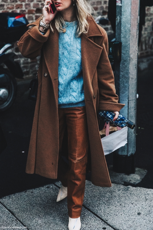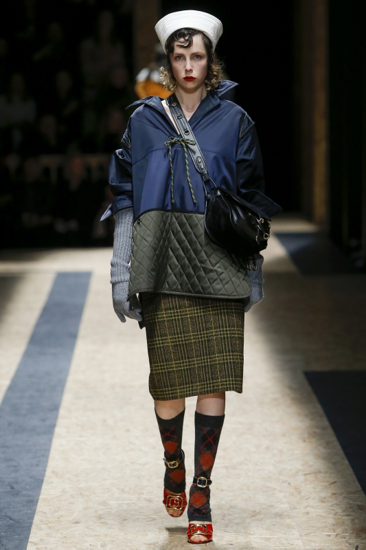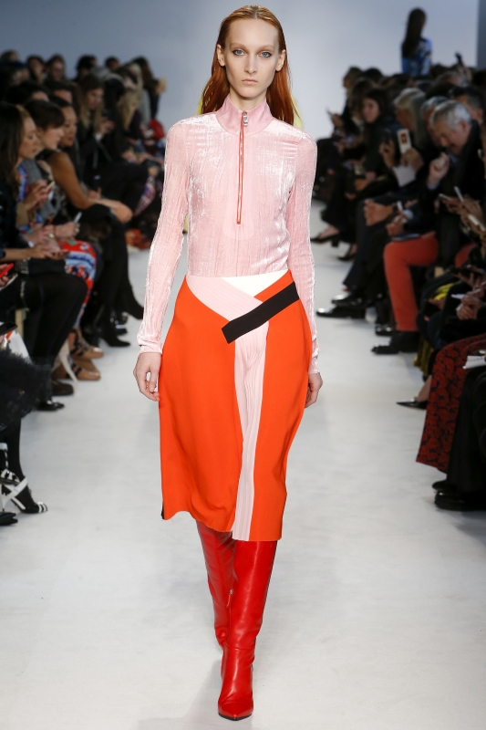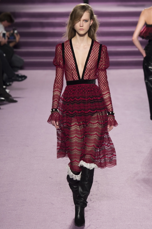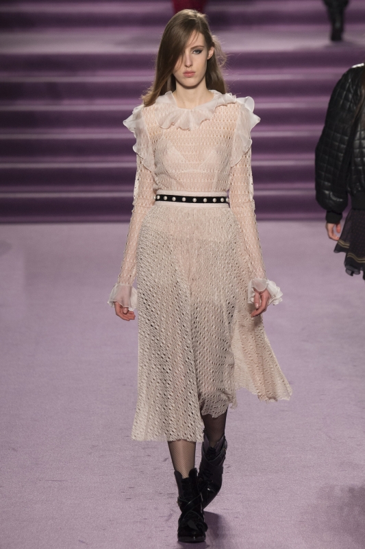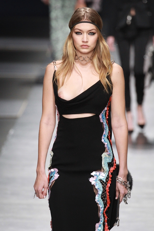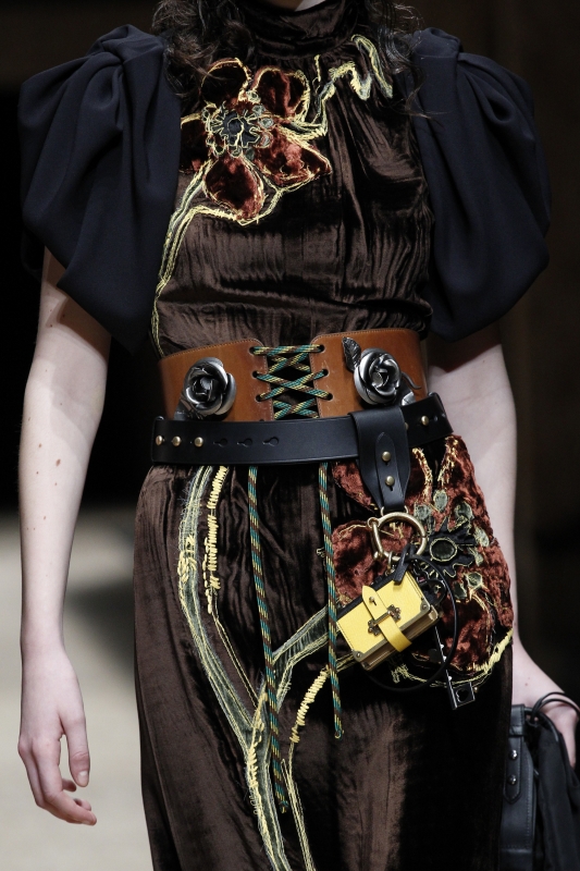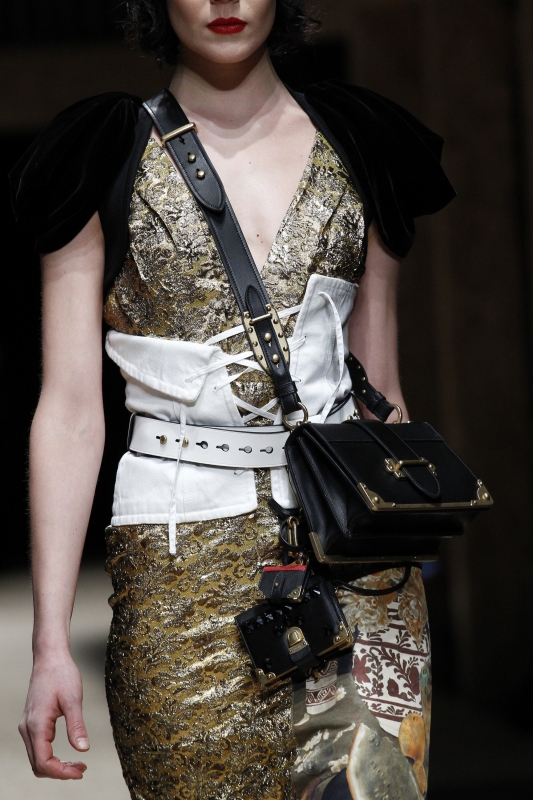 Le sportswear seventies n'a de cesse d'inspirer les créateurs (Emilio Pucci, Versace). Rose layette, orange et rouge composent un heureux trio (Emilio Pucci). On craint que la présence sur le show Marni de plusieurs pantalons fuseaux ne relance la tendance… (voir ici) Gucci sied décidément mieux aux femmes qu'aux hommes… (voir ici) En combinant texture douillette et rayures verticales colorées, Max Mara applique à la lettre la recette du best-seller consistant à mixer confort et originalité maîtrisée. Cette robe Gucci n'est pas forcément celle que l'on aurait choisie pour Anna Dello Russo… (voir ici) Chez Fendi, Karl Lagerfeld revendique une certaine légèreté d'esprit : rien ne sert selon lui de trop intellectualiser les choses. Au vu des passages joyeusement éclectiques gorgés d'énergie espiègle, de détails "Op art", de twist sixties et de fantaisie girly du show italien, on pourrait bien lui donner raison... Les cuissardes à volants Fendi ne manqueront pas d'affoler les inconditionnels du daim moulant montant haut sur la cuisse. Qui n'a pas son baggy façon croco ? (voir ici et là) Alessandro Michele a eu droit à un déjeuner en tête en tête avec Anna Wintour (merci à Alice pour la photo !) Domenico Dolce et Stefano Gabbana imaginent une robe susceptible de se substituer au Xanax (voir ici). La pièce forte du défilé DSquared2 n'a pas dû laisser indifférentes les rédactrices de mode habituées à couvrir la fashion week de Moscou… (voir ici) Alessandro Dell'Acqua livre une collection inégale : pas assez travaillées, certaines des pièces (voir ici, ici et là) de ses mix and match grunge appauvrissent la teneur stylistique de ses silhouettes. Marron et bleu azur font particulièrement bon ménage (voir ici).