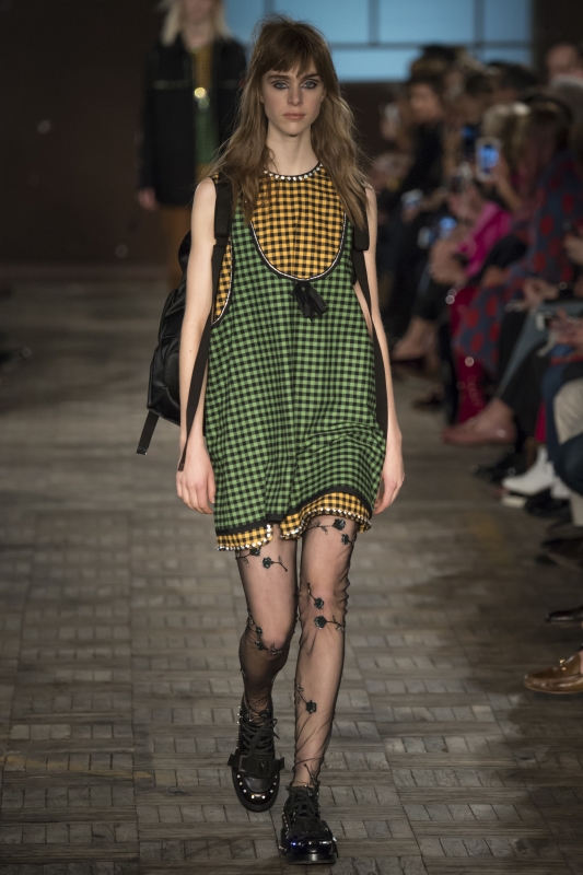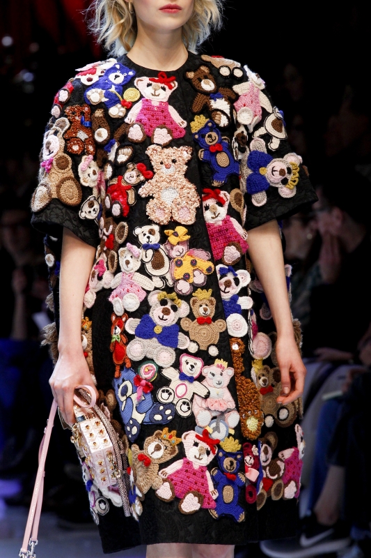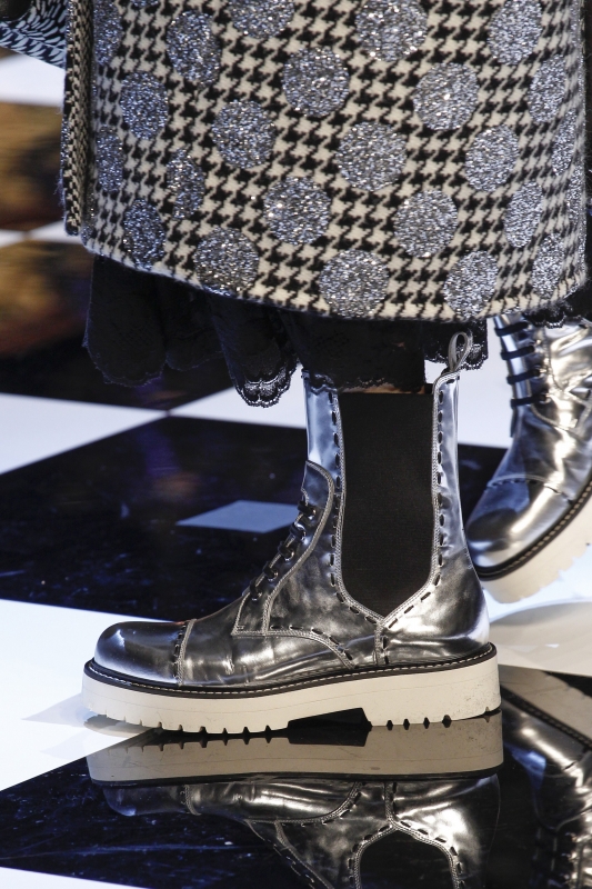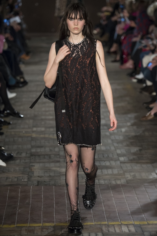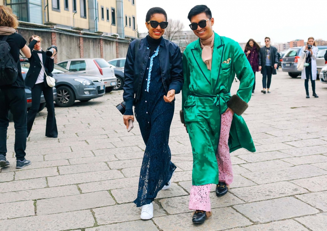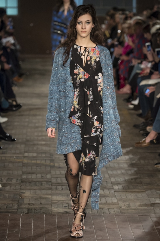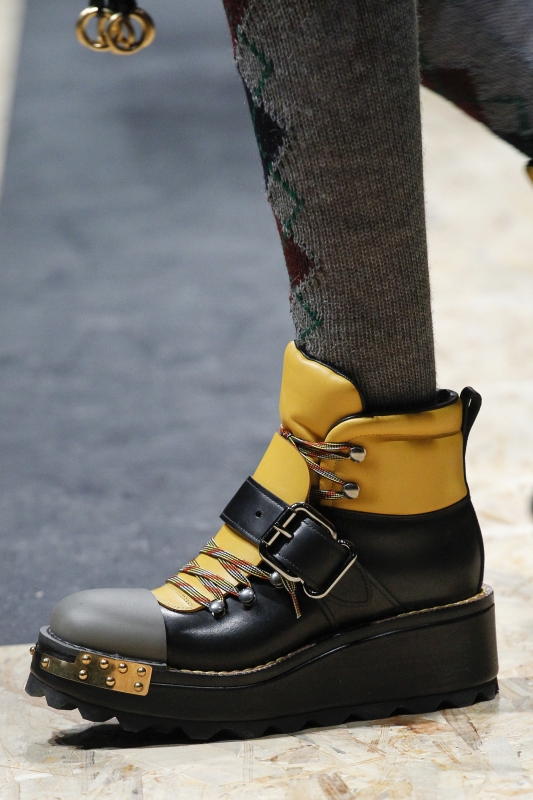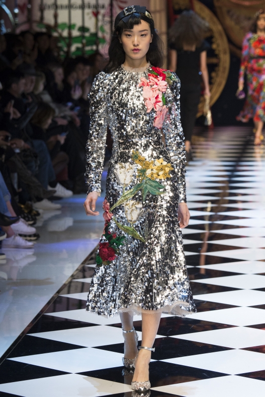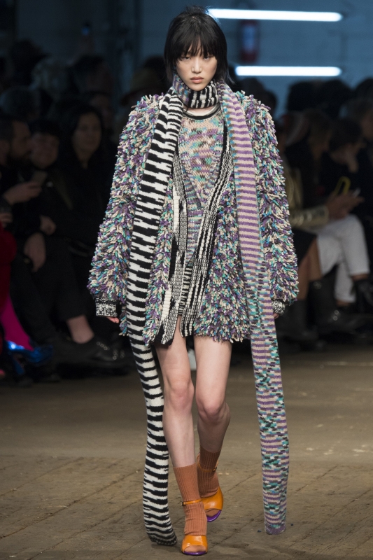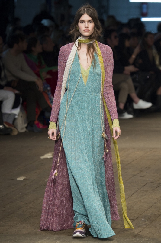 En livrant moult robes diaphanes de caractère (ici, ici et là) et quelques tricots douillets et bien pensés (ici et là), Lorenzo Serafini prouve qu'il est parfaitement à sa place chez Philosophy. Jupe midi plissée + sweat zippé rétro = le duo du moment (voir ici). A l'heure où Alessandro Michele fait figure de messie fashion, les robes à paillettes de chez Dolce&Gabbana (voir ici et là) apparaissent des plus portables. Chelsea boots et Doc Martens s'essaient à la fusion (Dolce&Gabbana). Attention, certaines robes pourraient bien venir renforcer l'égocentrisme de certaines…. (Dolce&Gabbana). Pour la première fois depuis plusieurs saisons, un show Missoni donne envie d'aimer la griffe non pas pour ce qu'elle fut par le passé, mais pour ce qu'elle est capable de livrer aujourd'hui. En se détachant des tendances et en ne cherchant qu'à exalter la nature de ses mailles iconiques, Angela Missoni accentue en effet drastiquement la désirabilité de sa collection (voir ici, ici et là). Pardessus et veste à capuche continuent de se superposer (voir ici et là). Après la mule fourrée, voici la compensée en fourrure... (voir ici). Il serait temps de passer à autre chose ! La bande verticale : l'atout numéro 1 des pantalons en vogue ! (voir ici et là) Oubliés les coloriages zen censés faire baisser le stress : cette saison, on se la joue thérapie fashion en passant nos nerfs sur un sweat-shirt bien blanc (une activité à pratiquer en couple, en famille ou en solo). Ce printemps, on n'hésite pas à extraire la veste chinoise de notre malle à déguisement et à la porter au grand jour… (voir ici et là)