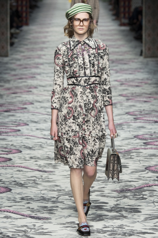 Qu'elle soit traitée en mode conceptuel chez Vêtements ou rétro chez Gucci, la robe à fleurettes perd cette saison sa dimension banalement romantique au profit d'une allure plus complexe, légèrement plus sombre et beaucoup moins premier degré que par le passé. Oubliées ainsi les baby dolls piquées de pimpantes marguerites : l'humeur est désormais aux imprimés tapisseries, aux longueurs chastes, à une féminité moins évidente. Reste à savoir si l'on choisira le camp preppy (à la Alessandro Michele) ou si l'on préférera s'aventurer sur des sentiers moins balisés en s'essayant à la déconstruction façon Demna Gvasalia...