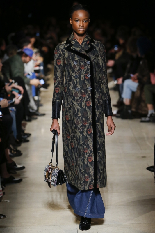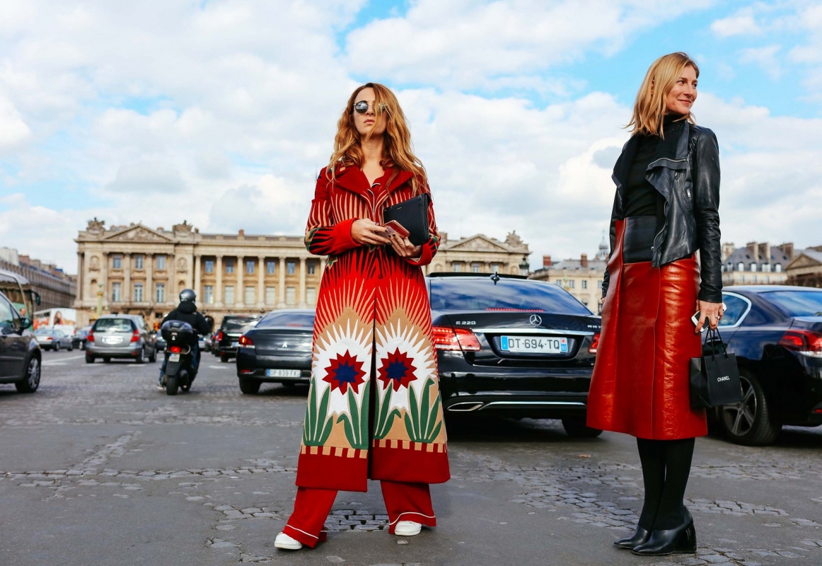 Encouragé par des ventes en constante augmentation, Olivier Rousteing poursuit la "kardashianisation" de Balmain… et tant pis si le résultat se révèle très peu fédérateur (voir ici, ici et là). Chez Chloé, Clare Waight Keller continue de miser sur le mix pièce sportswear/esprit romantico-bohème, tout en ajoutant à sa palette une touche de cuir biker. Les aficionados du genre seront comblés. Vert d'eau, blanc, olive et jaune canari font décidément bon ménage (Chloé). Décliné en cuir, le pantalon flare perd en dégaine bohème ce qu'il gagne en allure urbaine (voir ici). A contre-courant des sophistications "gucciennes" et des déconstructions à la Vêtement, Sébastien Meyer et Arnaud Vaillant (Courrèges) se veulent avant tout concis et pragmatiques. Ajoutez à cela une ré-interprétation humble et judicieuse des archives de la griffe et vous obtiendrez un sans-faute de la part des deux jeunes hommes. Attention cependant à ne pas lasser en oubliant de se renouveler... Entre poncho et pardessus, il faut choisir… (voir ici) Le manteau chauffant, une utopie ? Pas pour Courrèges, qui en présenta deux au sein de son opus automne/hiver 2016-2017. Le casting "100% white" des défilés Balenciaga et Vêtements interpelle les observateurs. Moins enthousiasmantes que d'ordinaire, certaines silhouettes Dries Van Noten attirent néanmoins l'attention. On pense tout particulièrement à celle mêlant blouson à l'imprimé léopard perlé, gilet de grand-père bleu marine porté à même la peau et jupe 7/8 taillée dans une étoffe masculine, qui compose un ensemble au glamour dramatique fascinant (voir ici). Lorsque les trottoirs parisiens se transforment en tapis rouges street-style, cela peut parfois donner lieu à des scènes cocasses (voir ici)… Déclinée dans une teinte monochrome, la veste zippée sportswear fait l'unanimité (voir ici). H&M Studio mise sur un casting pluriel (transgenre, femme de plus de 50 ans, taille au-delà du 38) sans caricaturer ni les uns ni les autres et cela fait du bien.