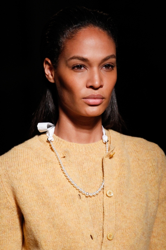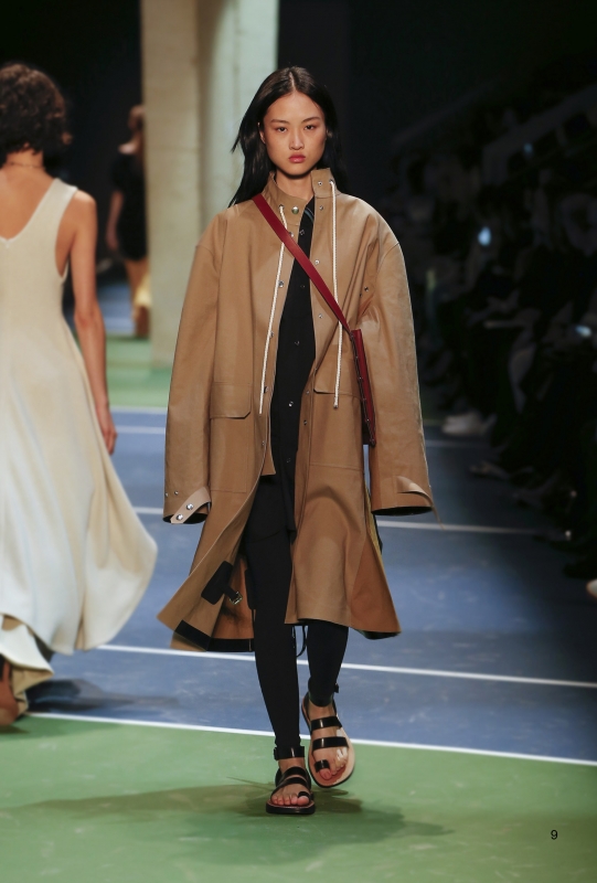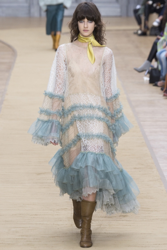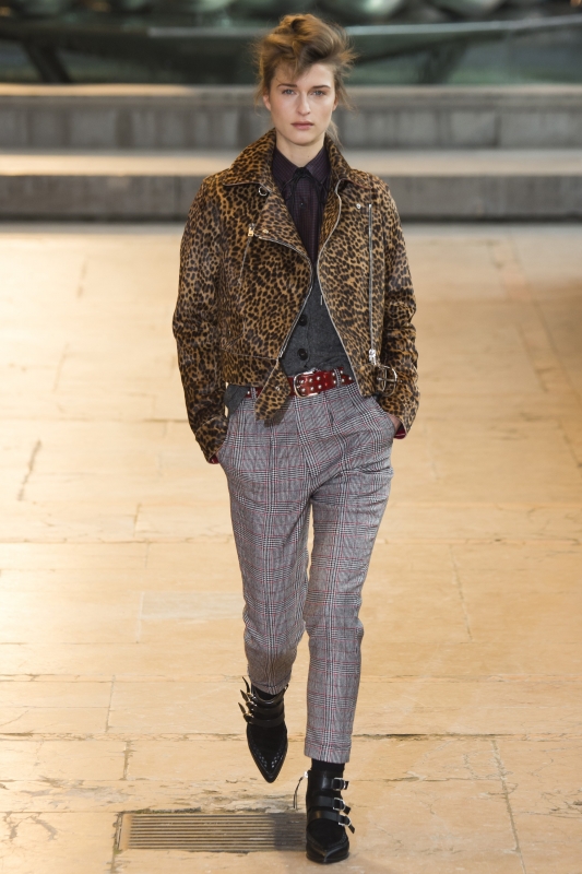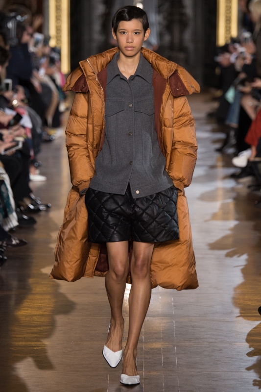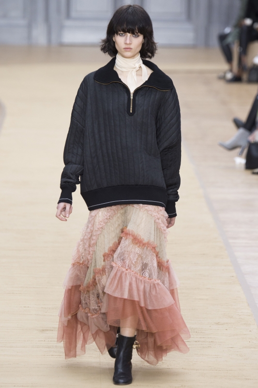Attention à ne pas porter les atours Gucci en mode "dadame", sous peine de "mémériser" ces derniers (voir ici et là). Chez Sacai, difficile d'imaginer le rendu réel de la collection avec toutes ces sangles transformant de manière artificielle - et éphémère - l'allure des créations de Chitose Abe (voir ici, ici et là). Dommage … Graphiques et colorés, les manteaux Valentino illuminèrent le paysage urbain (voir ici). A sa grammaire streetwear/militaire, Riccardo Tisci ajoute cette saison moult références à l'Égypte antique. Et si certaines pièces ne déméritent pas (à l'instar des petites robes Osiris et des mini blousons évoquant les parures des pharaons), il n'en émane pas moins du reste de la collection une troublante sensation d'incohérence. Stella McCartney pousse cette saison le concept du confort à son paroxysme en multipliant les volumes oversize. De la doudoune géante en velours moiré à la robe pull cape en passant par la robe sweat girly XXL et le maxi short doudoune, l'humeur du jour est ainsi plus que jamais au cocooning sportswear. Ce qu'il ne l'empêche pas de livrer dans le même temps de ravissantes et raffinées robes esprit lingerie... L'utilitarisme nonchalant de la femme Céline fait partiellement mouche : alors que ses amples pantalons frôlent - comme souvent - la perfection et que ses imperméables donnent envie de renoncer au beau temps, ses sandales hivernales et certaines de ses robes (voir ici et là) ont quant à elles plus de mal à convaincre… Phoebe Philo valide la tendance "robe sur pantalon" (voir ici et là). En imaginant un perfecto imprimé léopard, Isabel Marant s'assure l'amour éternel des modeuses (voir ici). Edie Campbell nous donnerait presque envie de porter le jogging en total look (Chloé).