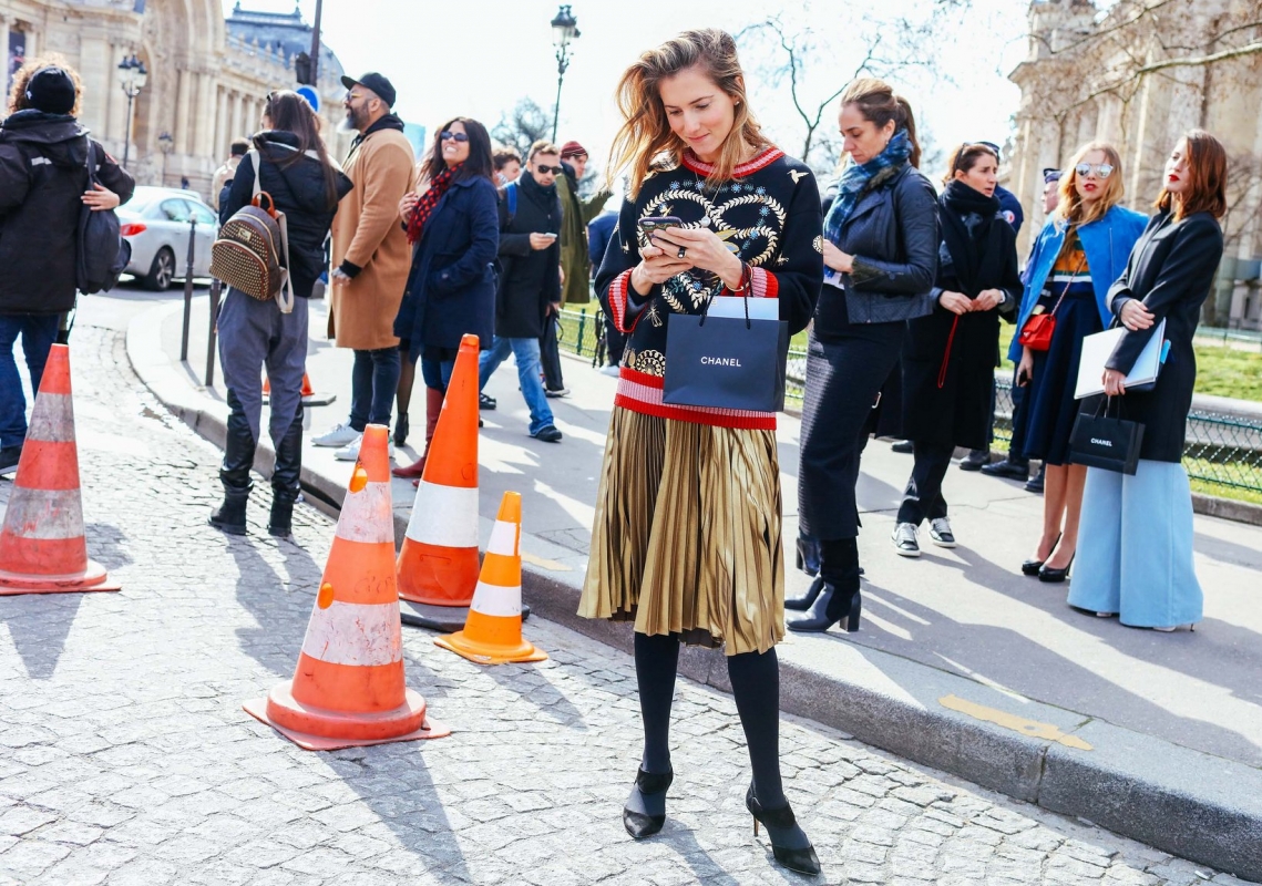 Et je suis aussi assez effarée par le fait que sur les photos streetstyle, les gens ont toujours le nez rivé sur leur téléphone!Alors même qu'ils arpentent généralement des lieux magnifiques.
