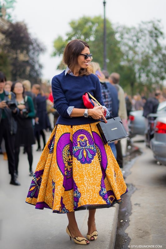 Archi-fan de ses deux jupes en pagne :-D ; j'aime les jupes amples, mais les jupes amples, elles, ne m'aiment pas :-( . La faute sans doute à ma morphologie de ronde et au fait que je ne porte que des baskets ( quand ce type de jupes requiert des talons).