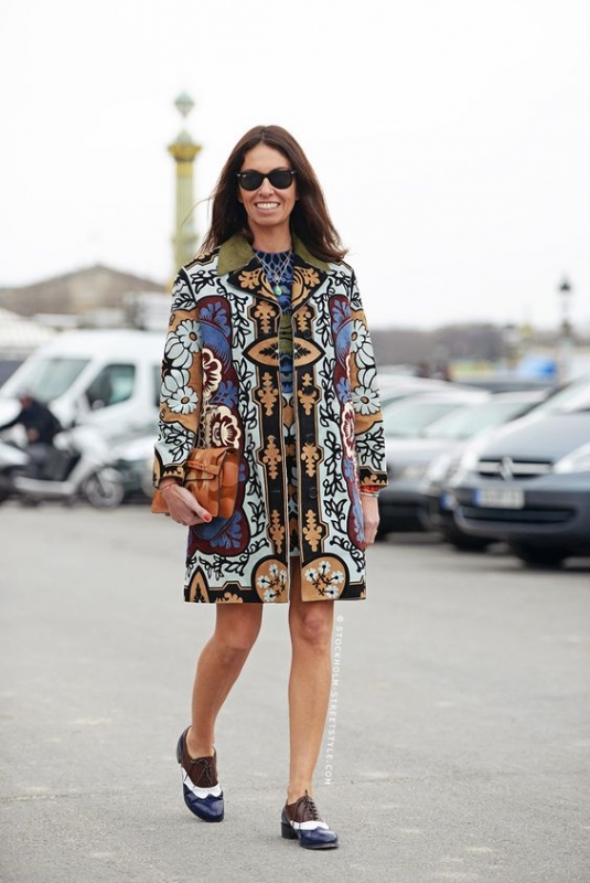 J'apprécie ses looks colorés qui nous change tant des uniformes parfois trop ennuyeux à la parisienne. Elle maîtrise complètement les couleurs et les imprimés tout en ne paraissant pas déguisée. Chose que je ne retrouve pas chez Anna Dello Russo. Très bel article comme toujours.