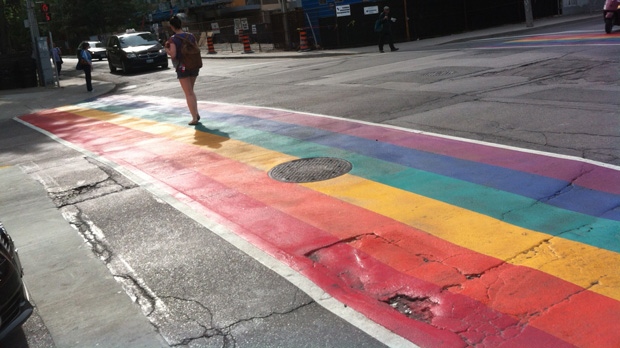 15h : En descendant Church Street (située à quelques dizaines de mètres de notre immeuble), nous réalisons que nous vivons en réalité à deux pas du quartier gay de la ville. Comme à San Francisco, ce dernier diffuse une atmosphère chaleureuse et légèrement branchée. J'aime cette liberté à fleur de muscles, ces couples siamois, ces passages piétons arcs-en-ciel… 15h15 : Arrivés au niveau de Carlton Street, l'immense enseigne Loblaws attire notre attention. S'agirait-il d'une variante de Whole Food ? Après une courte exploration, il s'avère que l'on y trouve de tout : des produits bio, des chips de maïs faites sur place, des cupcakes multicolores, de la pâte à pizza fraîche à la farine complète, des gâteaux en forme de hamburger ou encore des sushis au riz brun, le tout dans un espace aéré, propre et avenant. On se promet de revenir au plus vite ! 15h45 : Nous finissons par atterrir en plein downtown en quête d'une boutique Apple, que nous trouverons au coeur de l'immense mall local. J'y laisse alors Julien et emmène Charles flâner chez J.Crew. Un petit tour entre les portants me confirme que si leurs tee-shirts grands col V sont très chouettes, la plupart des pièces font en réalité plus "WASP" que "Jenna Lyons".