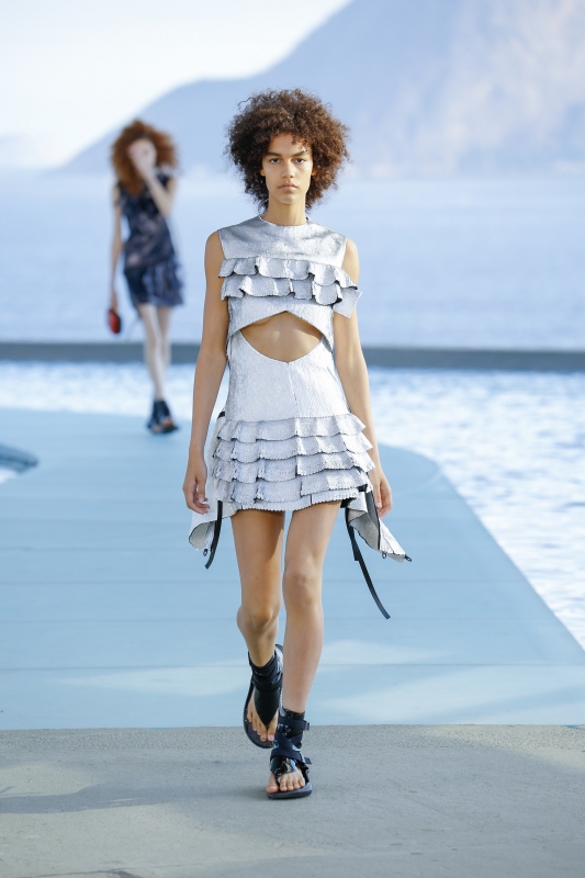 Plus "Ghesquière" que jamais, ce nouvel opus Louis Vuitton s'inscrit dans la continuité du travail créatif débuté il y a quelques saisons par le designer. Ici fusionnent en effet gimmicks sportswear, élans futuristes, cuirs d'exception et références artistiques (Helio Oiticica et Aldemir Martins), le tout mâtiné de sexyness conceptuelle et de sophistication contemporaine. Dans les faits, cela donne naissance à une collection pour créatures filiformes aimant se glisser au sein de robes déstructurées pour surfeuses mondaines, de modèles amples exaltant leur fibre bohème ou encore de mini robes capes aux allures de mignardise SF. On retiendra par ailleurs la présence de parkas graphiques XXL (confirmant ainsi la tendance "outdoor sporty" aperçue sur le dernier défilé Balenciaga) et de micro robes de sirène mariant avec audace portabilité, sensualité et partis pris conceptuels.