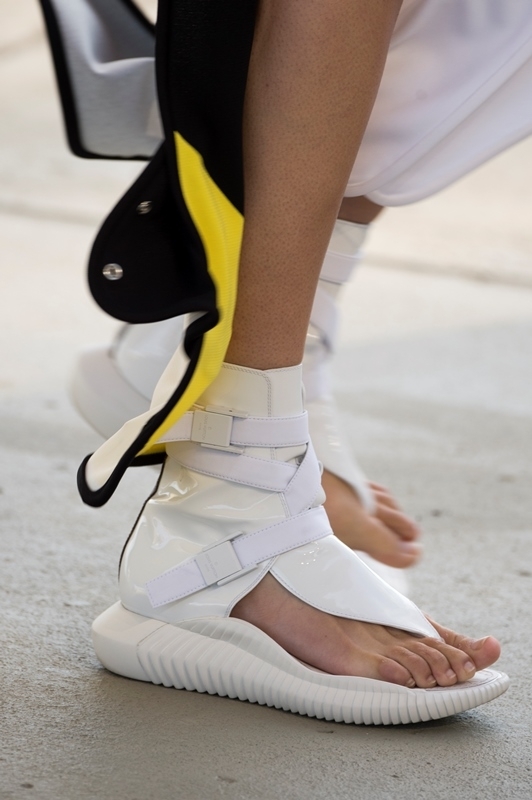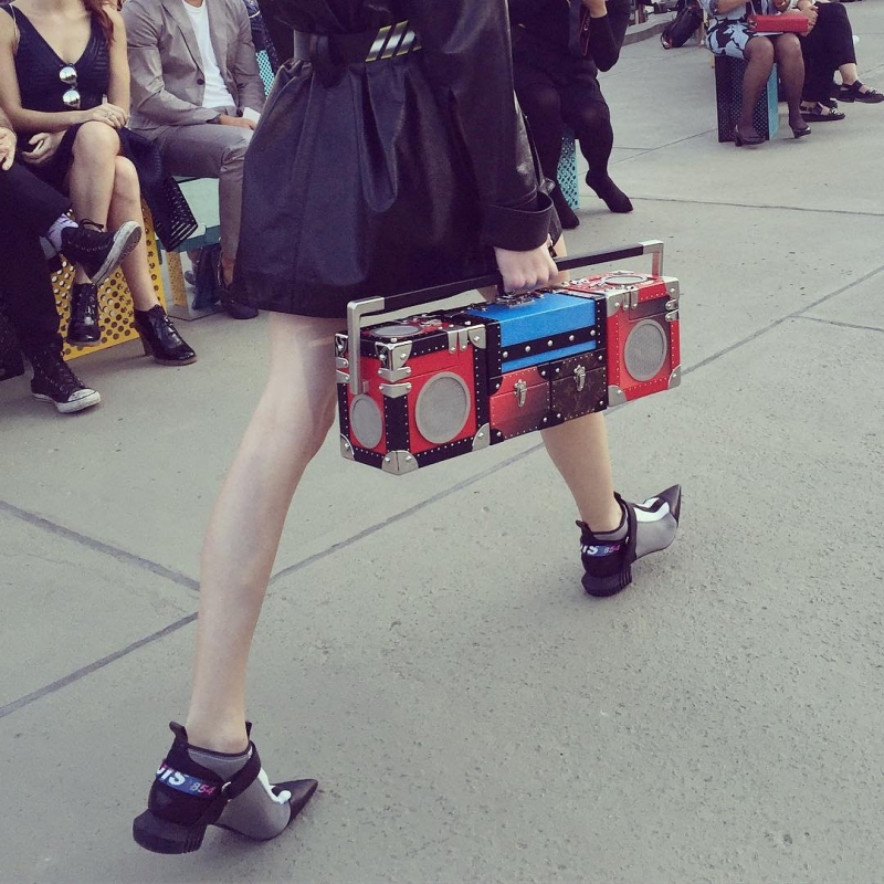 Si la boombox imaginée pour l'occasion fit le bonheur de toutes les instagrameuses en herbe présentes à la grand-messe Louis Vuitton, ce furent néanmoins les tongs mutantes chaussant les belles du show qui retinrent le plus l'attention (avec leurs semelles ergonomiques et leur style "voyageuse de l'espace", ces dernières pourraient bien rapidement voler la vedette aux mules Gucci). De leur côté, les boots hybrides mêlant dégaine western et néoprène aquatique risquent fort de se retrouver très vite aux pieds des influenceuses, auxquelles Louis Vuitton ne manquera pas d'envoyer ses dernières nées.