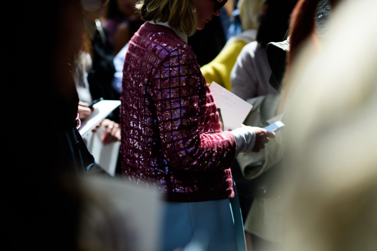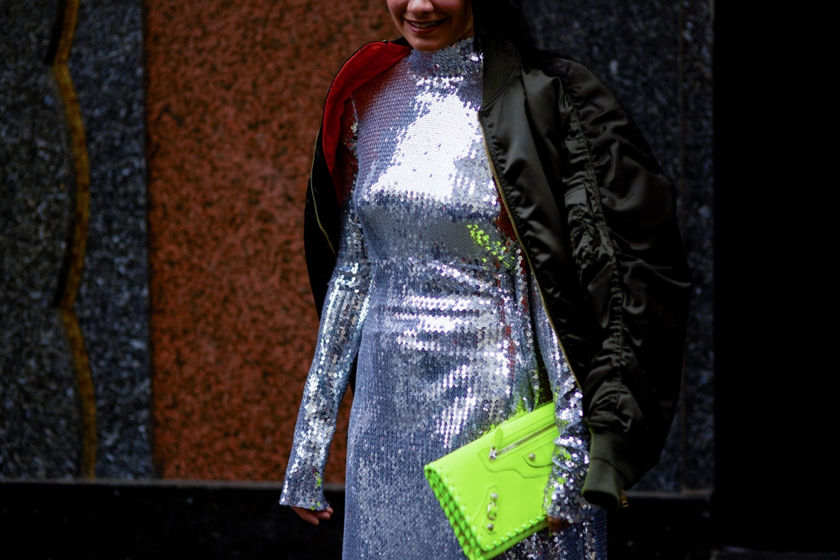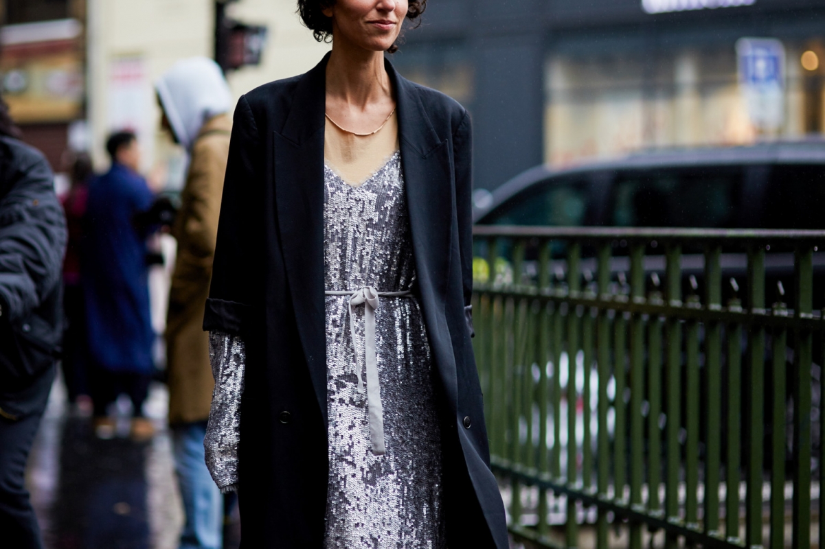 Marier atours "classique/casual" et bijoux imposants, l'idée étant de se servir de l'aura sage de l'un pour exalter celle - plus glamour - de l'autre (voir ici et là). Conjuguer sur le même look vert canard, vert d'eau, bordeaux et touche d'or (voir ici). Apaiser l'aura disco d'une pièce brodée de sequins en la mixant à un modèle de nature opposée, tel qu'un ample trench kaki, une large veste masculine (voir ici et là) ou un bomber. User et abuser de la nature bon enfant de l'imprimé vichy en le portant sur des pièces audacieuses, flamboyantes ou encore sexy, qui nous feront oublier les robes chasubles de notre enfance. Dénicher une veste de coupe classique à la texture hautement ouvragée (voir ici). Les jours de pluie, ne pas bouder l'efficace trio trench camel/pantalon large bleu marine court sur la cheville/baskets blanches (voir ici).
