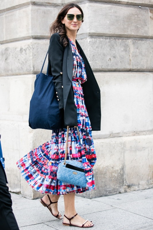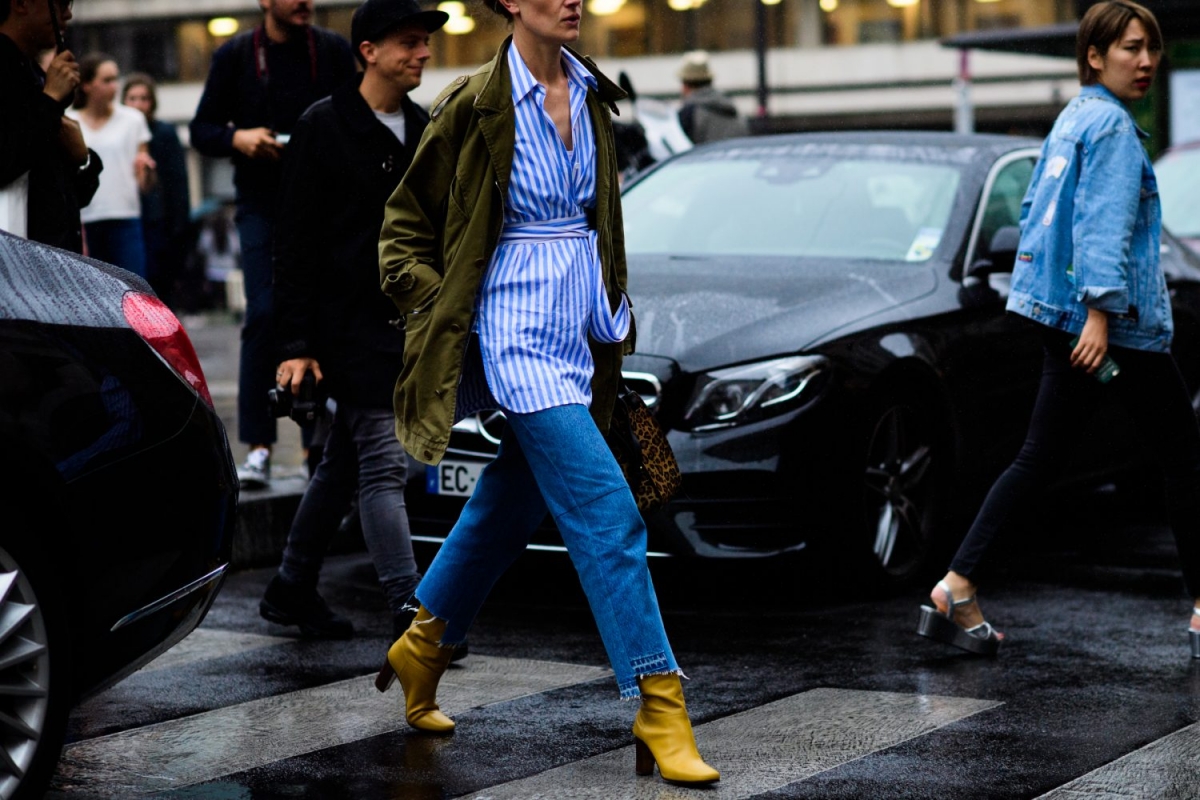 Penser à agrémenter les fameuses rayures bleues verticales du moment d'une touche de léopard, matinée d'une pincée de kaki et d'un shoot de bleu jean (voir ici). Penser à souligner la taille par des coupes "corset" plus fleur bleue/casual qu'outrageusement sexy (voir ici). À la rentrée, ne pas hésiter à prolonger la durée de vie de ses longues robes en les portant avec une paire de bottes (voir ici et là). Dérider une tenue classique en la réchauffant au contact d'une veste en jean oversize (voir ici). Continuer à porter ses Converses blanches en toute occasion (voir ici). Surmonter ses robes fluides, mi-longues et ceinturées taille haute d'une veste masculine un brin ample (voir ici). Investir dans une combinaison kaki zippée sur le devant et qui, en fonction de son accessoirisation, jouera avec brio les caméléons fashion (voir ici). Marier les teintes orangées de l'été avec du blanc vanille, du bleu marine ou encore du noir (voir ici, ici et là).