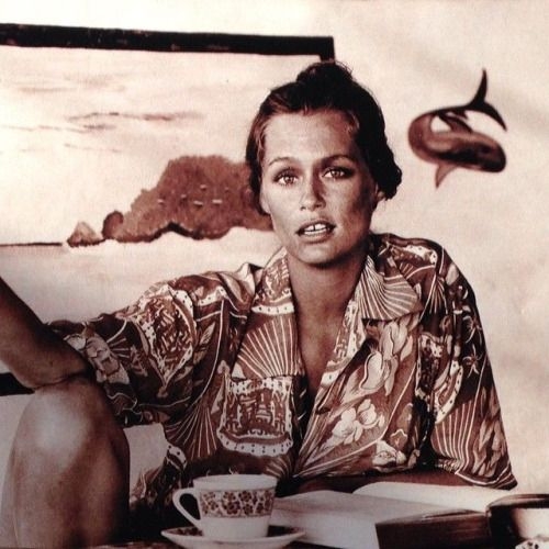 Télescopant pose désinvolte, délicate tasse en porcelaine, estampe asiatique, teintes sépia et femme américaine à la beauté contemporaine, ce cliché reflète un art de vivre à la fois délicat et libéré qui me fait rêver. Et si je ne devais en retenir qu'une chose, ce serait assurément cette chemise hawaïenne qui, avec son ampleur masculine et ses motifs fleurant bon la douceur des plages hawaïennes, appelle à baigner son quotidien d'insouciance. De manière plus prosaïque, si - suite à quelque tour de passe-passe spatio-temporel - celle-ci devenait mienne, j'en ferais ma compagne au long cours, la nouerais sur une jupe midi bleu marine, la ferais blouser dans un jean flare taille haute ou la porterais en nuisette sous un épais gilet…