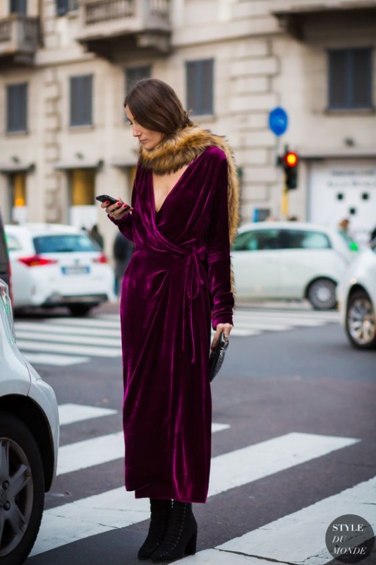 Dans la pratique, il sera judicieux de trouver un juste milieu entre la sage tenue de Blake Lively et l'audace rétro de Giorgia Tordini. On pensera ainsi à : Privilégier la panne de velours sur le velours côtelé. Marier velours vert amande, rose pâle et imprimé camouflage (voir ici). Adopter un blazer en velours bleu nuit, caramel ou bordeaux à peine cintré, dont on prendra soin de roulotter les manches et que l'on mixera à des atours casual rock. Se dénicher une robe en velours mi-longue, déclinée dans des teintes sombres et taillée de manière à mettre en valeur le tombé du velours. On la mariera soit à des boots plates rockabilly (Philosophy), soit à des bottes montant haut sur le mollet (Vanessa Seward, Alberta Ferretti). Mixer nos robes en velours ultra décolletées à un sous-pull (voir ici). Associer le velours doré à du bleu canard ou au duo rose layette/caramel (Vêtements). Miser sur la subtilité en optant pour un accessoire en velours à la fois pointu et facile à vivre (ceinture, boots, etc.). Essayer de ne pas porter plus d'une pièce en velours sur un même look. Préférer le velours froissé à la fourrure (Isa Arfen).
