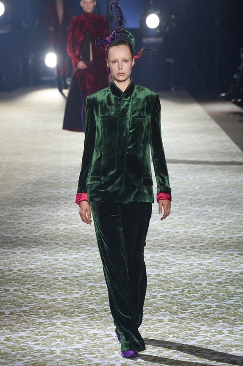 Je pense que je suis un peu comme toi, je ne me vois pas personnellement porter du velours mais je trouve certains looks sublimes (le costume Alberta Ferretti par exemple). Je trouve par ailleurs assez sympathique le fait de voir cette matière un brin oubliée ainsi retravaillée par les créateurs d'aujourd'hui.