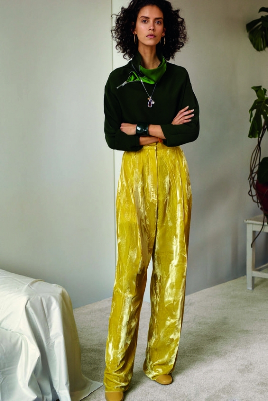 Faire très attention aux ensembles en velours, qui pourront aisément être confondus avec un élégant pyjama (Haider Ackermann), quand ils ne mémériseront pas dangereusement la silhouette. La prudence est donc de mise (même si cela peut parfois fonctionner). Privilégier les robes et jupes en velours affichant godets, fronces ou encore drapés, qui permettront de sublimer ses reflets. Éviter de compliquer les choses en optant pour une pièce cumulant les challenges (à l'instar de ce pantalon taille haute en velours jaune citron Céline). Réfléchir à deux fois avant de succomber au confort des joggings en velours Juicy Couture.
