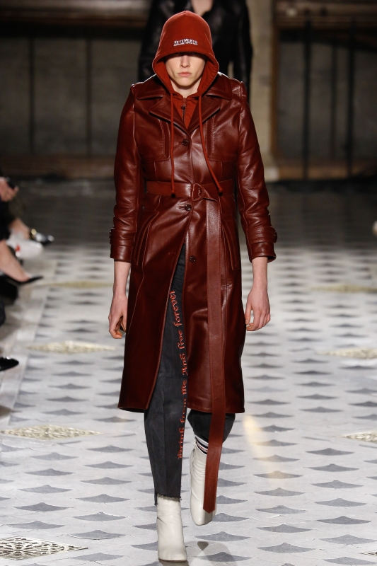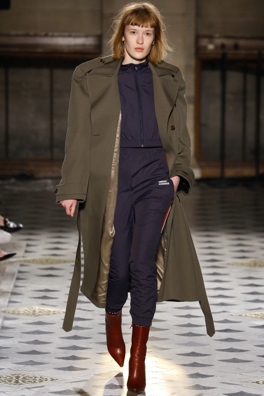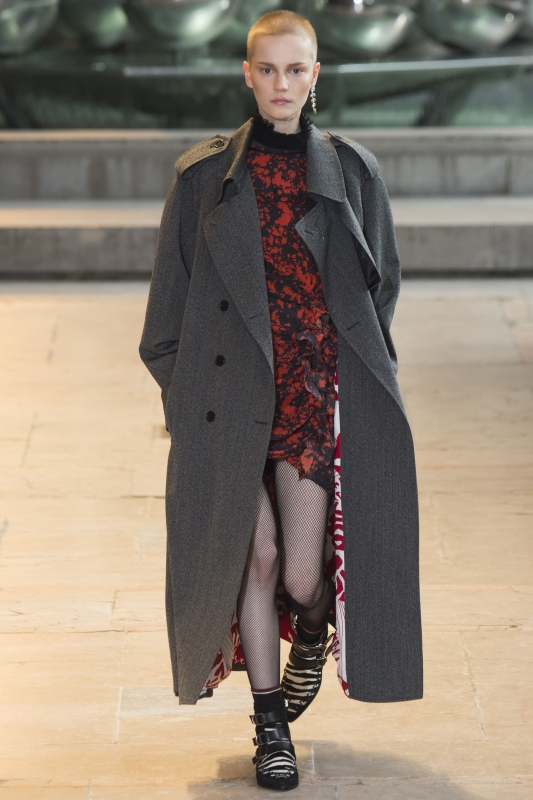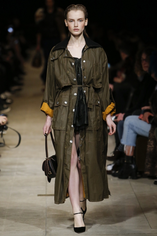 Si l'on en croit Demna Gvasalia, le trench devrait se porter pendu à la ceinture ou basculé vers l'arrière (de manière à dévoiler largement les épaules). Peu adaptés à la vie de tous les jours, ces gimmicks devraient restés cantonnés à quelques happy few évoluant dans les hautes strates de la fashion sphère. Cette saison, le trench-coat ample et long est autorisé. On pourra soit le porter ouvert, soit ceinturé taille haute (Balenciaga, Miu Miu). Point de vue dress code, on s'autorise à le marier au duo mini robe/boots plates (Isabel Marant), mais aussi au trio col roulé/jupe midi/bottines chaussettes. On n'hésite pas à s'inspirer des combos de couleurs des collections Lacoste et Vêtements en associant trench-coat mastic et bleu canard, trench teinte chaudron et duo blanc/bleu marine, trench mastic et mix orange/marron ou encore trench kaki et tandem bleu marine/bordeaux. Celles évoluant dans un milieu professionnel créatif pourront se permettre de cintrer leur trench via un néo-corset (Prada). Dès les premiers frimas matinaux, on pensera à enfiler de longs et épais gants de laine et à glisser à l'intérieur les poignets de notre trench (Prada). Ce look See By Chloé nous donne envie de mixer trench rose XXL et amplissime pantalon ultra léger ! Le trench kaki appréciera de se voir arboré avec un foulard noir et un jogging en molleton roulotté sur une paire de derbies noires (voir ici). Cet automne, on use et abuse du mix trench-coat camel/pièce à rayures verticales bleues et blanches (Burberry). Aussi réussi soit le mariage entre cet ample trench kaki et ce sublime pyjama de journée, on prendra néanmoins soin de dépareiller ce dernier afin de le rendre l'ensemble plus "digeste" (Burberry). Le 43e passage du défilé Burberry automne/hiver 2016-2017 nous incite à confronter nos trenchs camel au duo rose thé/vert céladon. Chez The Row, les soeurs Olsen préconisent d'associer trench ultra long, robe longue et souliers plats. Difficile à assumer quand on ne dépasse pas le mètre 75... Le trench de teinte cigare aime à réchauffer le tandem bordeaux/rose sombre (Vanessa Bruno). On n'hésite pas à glisser un sweat à capuche sous son trench (Vêtements). Les trenchs s'arrêtant sous le genou autorisent le port de la chaussette remontée sur un mollet nu (voir ici).