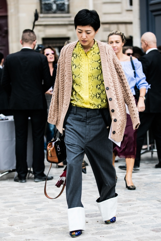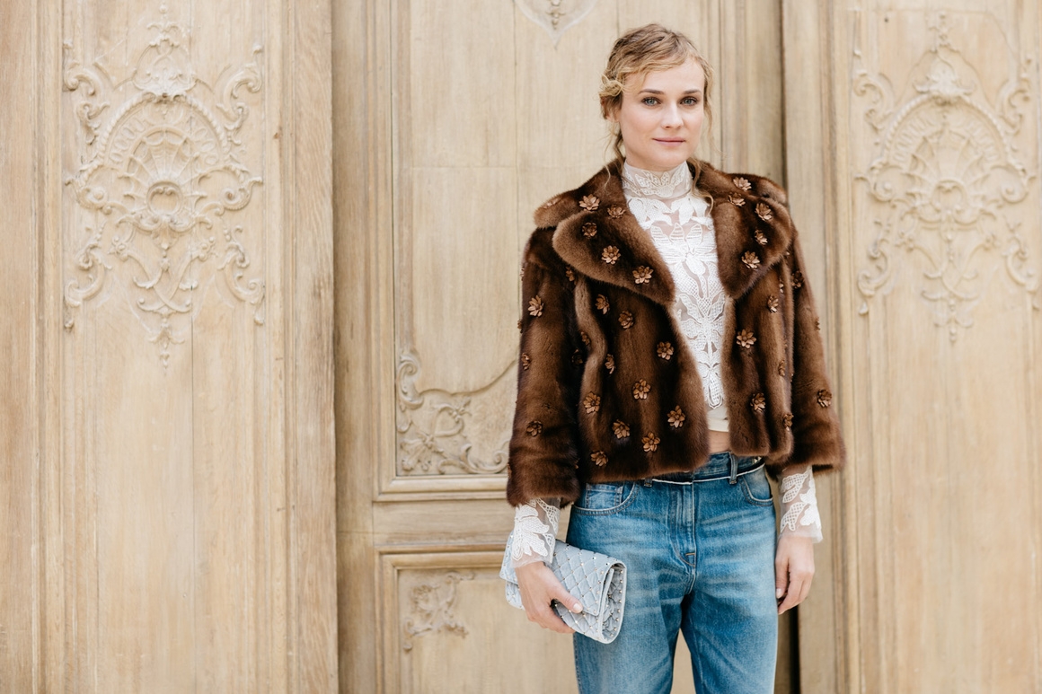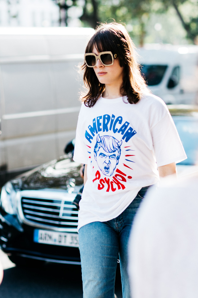 En déclinant le style Hermès indépendamment des tendances, Nadège Vanhee-Cybulski offre à sa clientèle de quoi nourrir son dressing de quelques belles pièces intemporelles, à l'instar de ce sublime pantalon large taille haute. Le K-Way Adidas n'est apparemment plus réservé aux entraîneurs de foot (voir ici). Alber Elbaz se la joue incognito (voir ici). Le gilet de grand-père sied particulièrement bien à l'imprimé python (voir ici). Stella McCartney clôtura son défilé par une "battle" entre mannequins survoltées. Entre dentelle, fourrure chocolat et jean délavé, Diane Kruger affiche un look sans faute (prions simplement pour que la fourrure soit fausse). L'élection américaine s'invite au sein des looks des fashionistas (voir ici et là). Miroslava Duma prouve que les petits gabarits peuvent parfaitement porter les silhouettes Balenciaga (voir ici). Cette saison, il est apparemment de bon ton de récupérer les rubans de ses flacons de parfums afin de les enrober autour de ses souliers, mais aussi de porter son paillasson en étole... Le sweat permet parfois de rendre "cool" le plus inattendu des alliages (voir ici). Une fois de plus, Marion Cotillard nous prouve qu'elle est bien plus jolie au naturel que maquillée. Les bottes Balenciaga confirment leur allure folle. La traîne d'écume sublimant le fourreau de sirène clôturant le show McQueen rappelle à quel point la notion de poésie est essentielle sur un podium (voir ici). Désormais seul à la direction artistique de la maison Valentino, Pierpaolo Piccioli livre une collection certes un brin moins forte que d'ordinaire, mais néanmoins bankable. Ses duos rose/rouge devraient en effet séduire tous azimuts (voir ici, ici et là). Vue sur pas moins de 37 défilés, la Française Camille Hurel est la mannequin qui monte. À suivre... En période de fashion week, chacun veut sa seconde de célébrité… Hedi Slimane semble avoir été piqué au vif par la première collection Saint Laurent Paris d'Anthony Vaccarello... Karl Lagerfeld n'a pas pu s'empêcher de commenter l'agression de Kim Kardashian (voir ici).