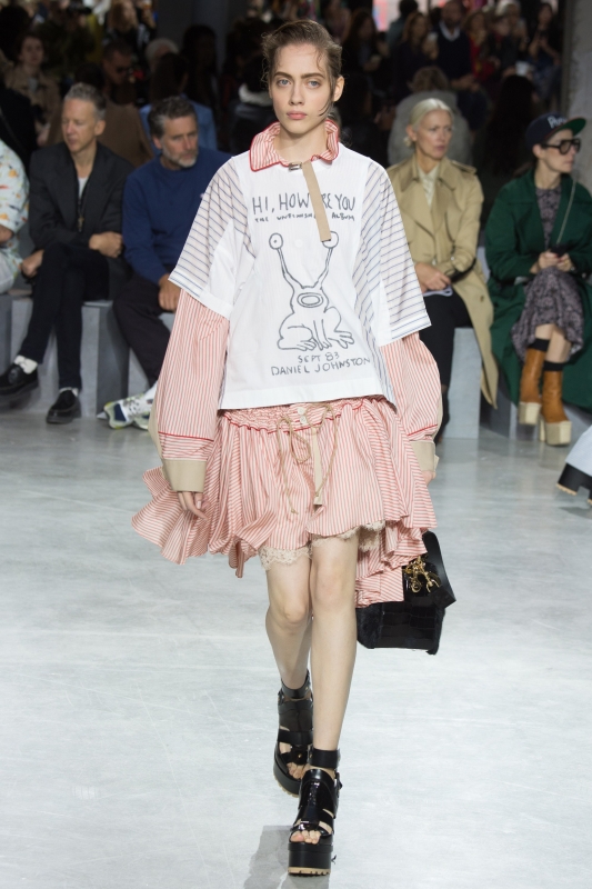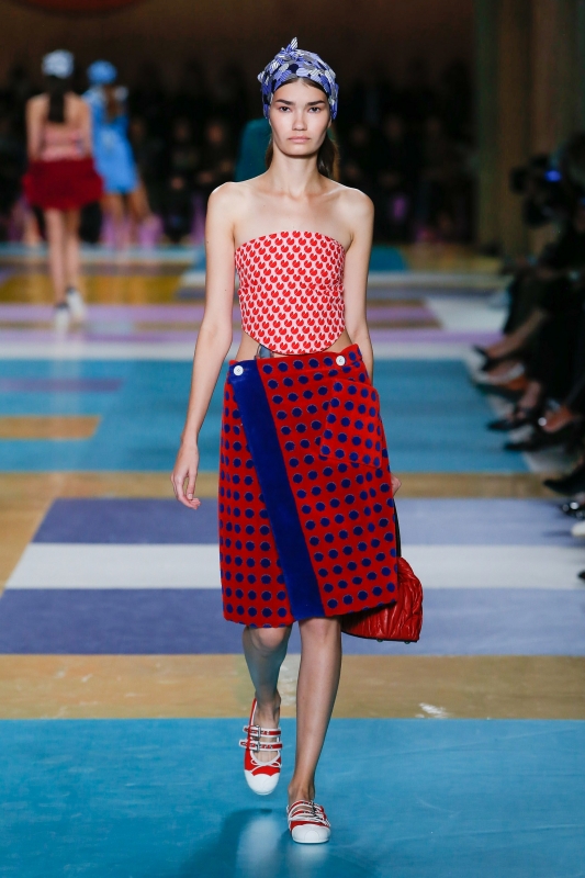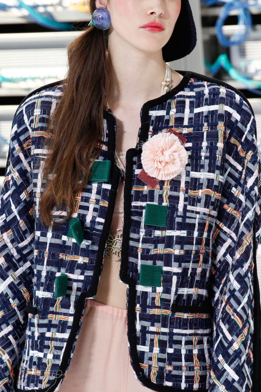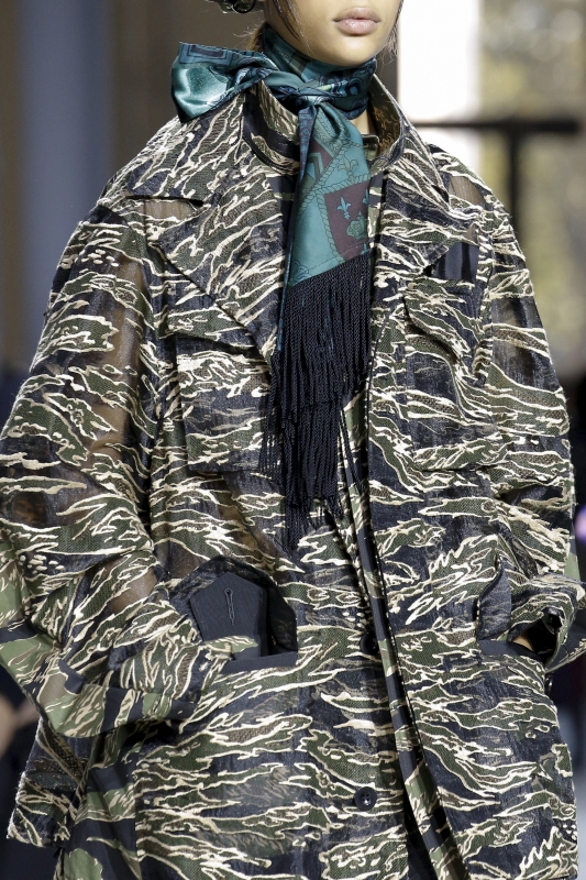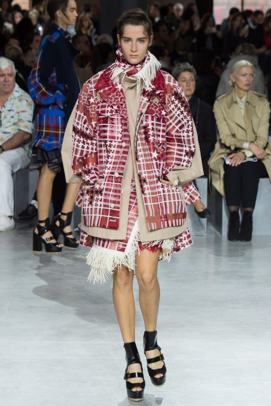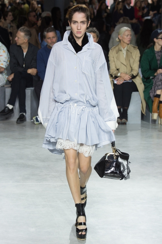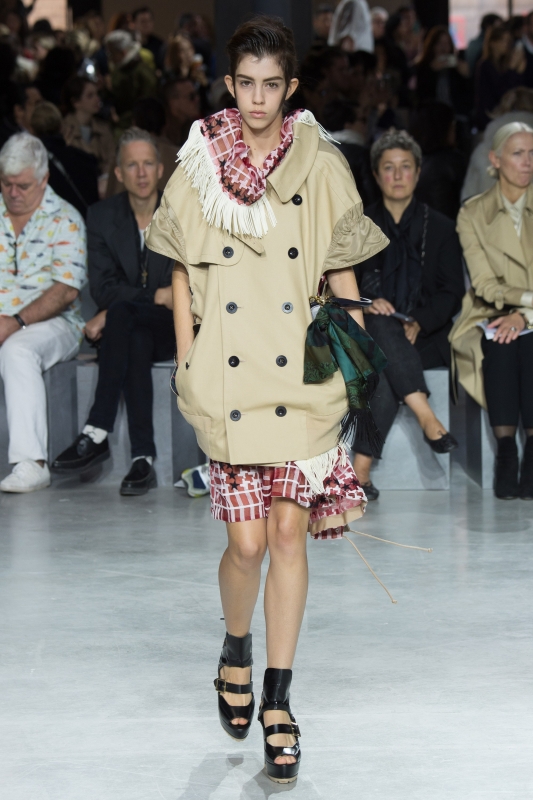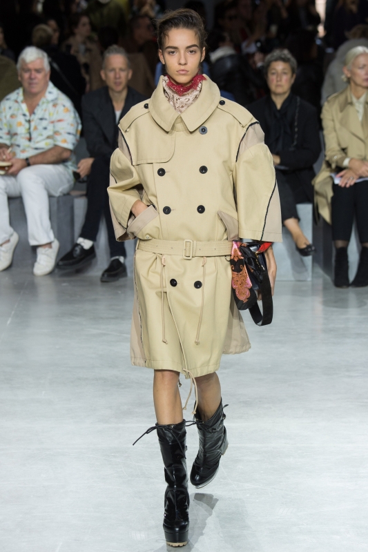 En abusant des volumes et en surdimensionnant certaines lignes, Vika Gazinskaya offre au rose une dégaine désinvolte et sophistiquée (voir ici, ici et là). La future "it" matière ne sera ni le lycra de Demna Gvasalia, ni un néo tissu technique imaginé par Nicolas Ghesquière, et encore moins une soie imprimée en mode Yves Klein. Non, la matière appelée à twister l'été 2017 est bien plus humble : le tissu éponge. C'est en tout cas ce que l'on déduit de la dernière collection Miu Miu, où manteau peignoir, étole et jupe portefeuille semblent s'être s'échappés d'une salle de bain sixties… Chez Sacai, Chitose Abe continue de déconstruire les classiques de la garde-robe afin de les transformer en pièces hybrides fleurant bon le néo-cool. Elle excelle ainsi à questionner l'allure du trench (voir ici, ici et là), l'imprimé camouflage, la dégaine des rayures bleues et blanches (voir ici et là) ainsi que la thématique du pyjama. À consommer hors total look.