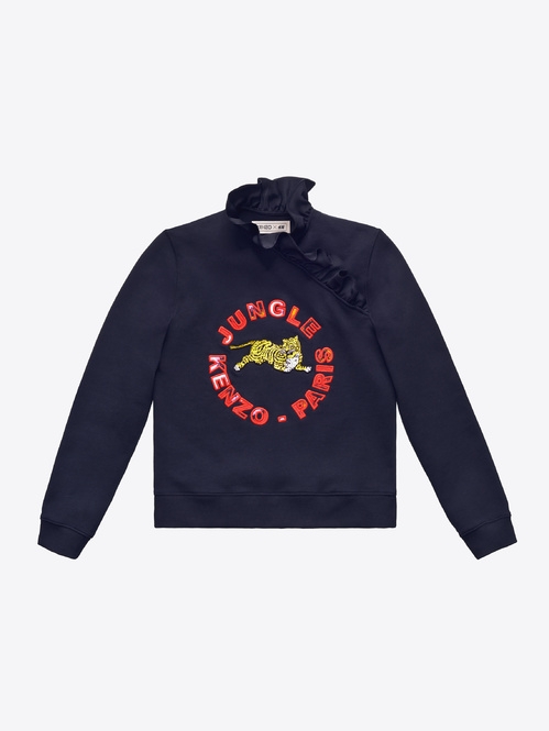 On pense notamment aux sweats qui, sans surprise (Kenzo ayant le chic pour en faire des best-sellers), se révèlent particulièrement intéressants niveau rapport portabilité/originalité. Qu'il s'agisse du modèle à col volanté - bleu marine ou orange - qui boostera ou de celui misant sur un color block d'imprimés qui déridera n'importe quelle jupe crayon ou pantalon large masculin, ces petits sweats mériteront certainement un détour en boutique.