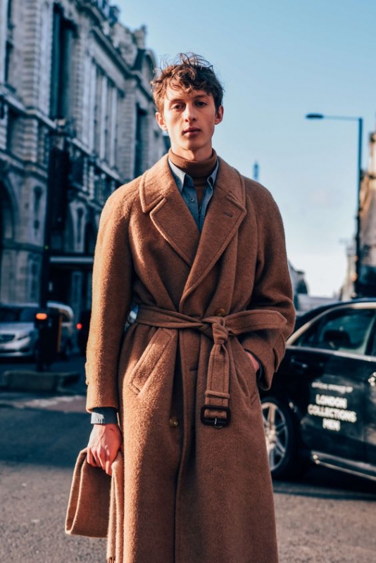 Souvent moins ostentatoires que leurs homologues féminins, les looks masculins affichent lors des fashion weeks un charme fédérateur, où élégance surannée, pragmatisme et partis pris stylistiques forts se mêlent pour le meilleur. Avec son large pardessus tabac manches raglan ceinturé étroitement par un solide double noeud et sa fine chemise en denim réchauffant un col roulé noisette, ce jeune homme aperçu sur un cliché de Tommy Ton me rappelle qu'en matière d'allure, coupe et coloris sont l'alpha et l'oméga de l'élégance.