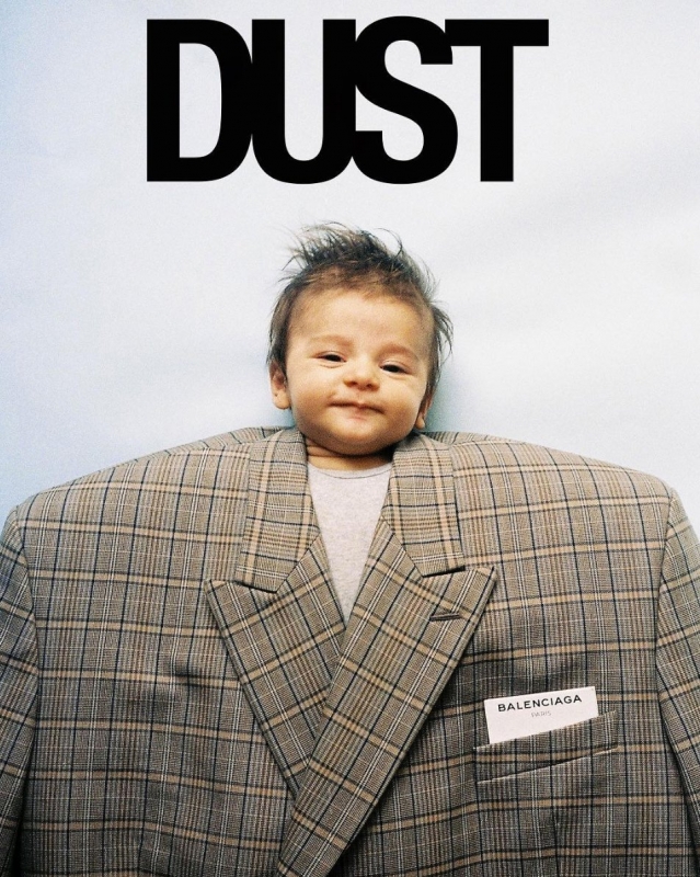 En choisissant de mêler maxi veste Balenciaga et mini bébé joufflu, le magazine Dust nous livre l'une de ses meilleures couvertures.