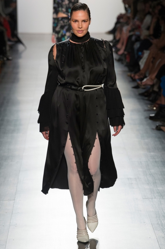 Les mannequins plus-size...Idée magnifique mais il faudrait l'étendre dans la production et ne pas le limiter au gimmick de défilé. Et puis, quand on voit le look porté par la jeune femme sur le podium Prabal Gurung, on comprend mieux pourquoi les designers évitent de mettre des mannequins plus-size sur leurs podiums..