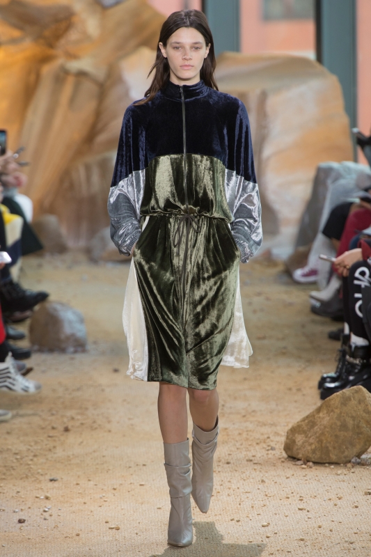L'élection de Donald Trump semble avoir réveillé la fibre militante des designers, qui furent nombreux cette saison à estampiller leurs tee-shirts/sweat-shirts de slogans célébrant des notions telles que la liberté, l'égalité ou encore le féminisme (Prabal Gurung, The Creatures of Comfort, The Row, Alice et Olivia). Si l'on en croit l'impression générale donnée par cette fashion week new-yorkaise, il semblerait que la mode se mette enfin à rationaliser sa vision de la femme idéale. Mélangeants mannequins d'âges et de morphotypes différents, les castings des défilés Michael Kors, Prabal Gurung ou encore J.Crew esquissent ce que pourrait être le paysage fashion une fois débarrassé d'une partie de ses diktats. Rag & Bone délaissa cette saison le concept du défilé au profit d'une exposition de photos. Ainsi dépourvue du stylisme "défilé" (dont l'objectif premier est de réussir à marquer l'assistance), la collection apparut plus brute, plus authentique, plus réaliste, mais aussi moins forte (voir ici et là). On salue cependant linitiative visant à tenter de trouver une alternative au traditionnel défilé. Après le fiasco de la saison dernière, Kanye West parvint cette fois-ci à trouver la bonne alchimie, entre show plus sobre, collection susceptible de se vendre (grâce à des logos bien visibles - permettant d'offrir au vêtement une certaine valeur ajoutée - et des jeans plus fédérateurs que ses joggings oversize) et offre "outwear" relativement désirable (voir ici et là). Pour la première fois, une femme voilée défila lors de la fashion week new-yorkaise (Yeezy). L'écharpe "manches de pull-over" vue chez Michael Kors ne manque pas de "cosy-appeal" (voir ici). A l'heure où le sportswear a tendance à crouler sous les logos voyants et les coupes avant-gardistes (Supreme x Vuitton, Vêtements), Felipe Oliveira Baptista nous prouve qu'inventivité, portabilité et technicité peuvent s'avérer bien plus convaincants que n'importe quel buzz stylistique/marketing. On en veut pour preuve cette robe sporty aux découpes rétro nous donnant envie de porter du velours, mais aussi et surtout les pièces en cuir color-block à la saveur rétro parfaitement équilibrée (voir ici et là).