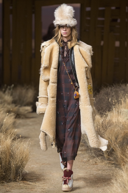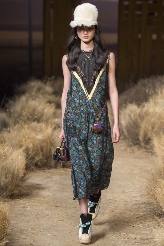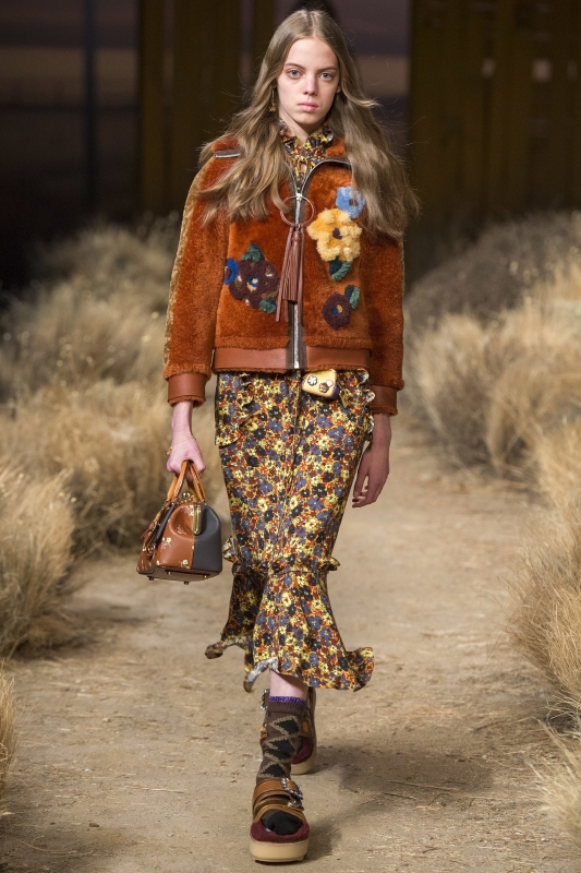 A l'instar de Jack McCollough et Lazaro Hernandez (Proenza Schouler), Alexander Wang s'essouffle sérieusement. Il se répète, n'invente plus et se contente de décliner en mode premier degré l'idée qu'il se fait du style grungy/rock (voir ici, ici et là). L'âge d'or de l'ex "petit prince de la mode new-yorkaise" semble toucher à sa fin... Nul doute qu'une fois débarrassées de leurs peaux de bêtes, de leurs bonnets haut de forme et de leurs moon boots, bon nombre de pièces de la nouvelle collection Coach (on pense notamment aux robes et jupes fleuries - voir ici, ici et là) feront le bonheur des clientes - de plus en plus nombreuses - de la griffe. Il faut dire que Stuart Vevers parvient souvent à trouver le juste milieu entre commercialité et fashion appeal. Même si parfois un peu plus de subtilité ne serait pas de refus...