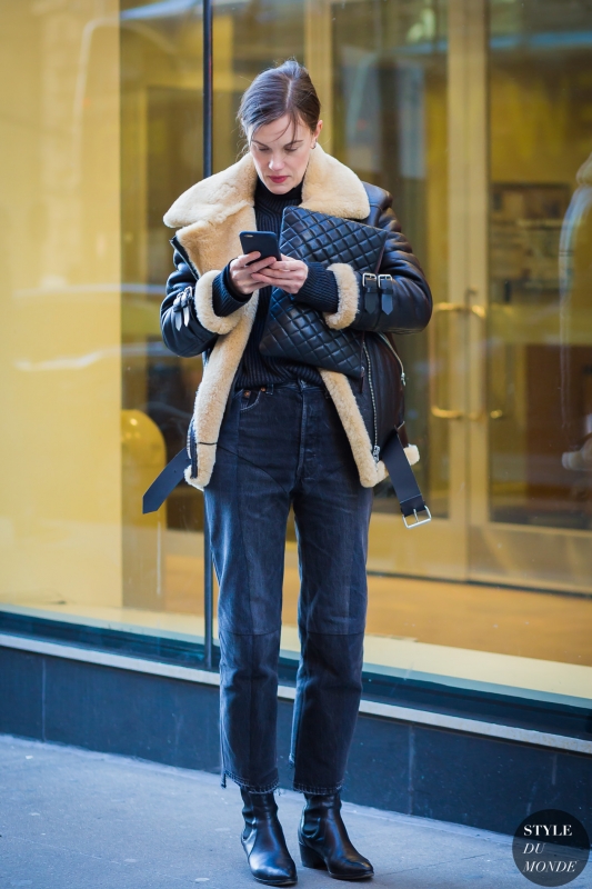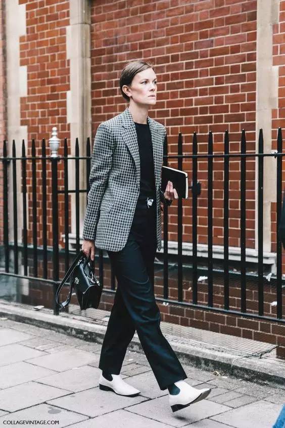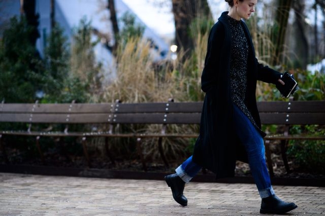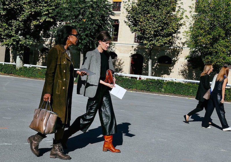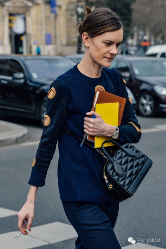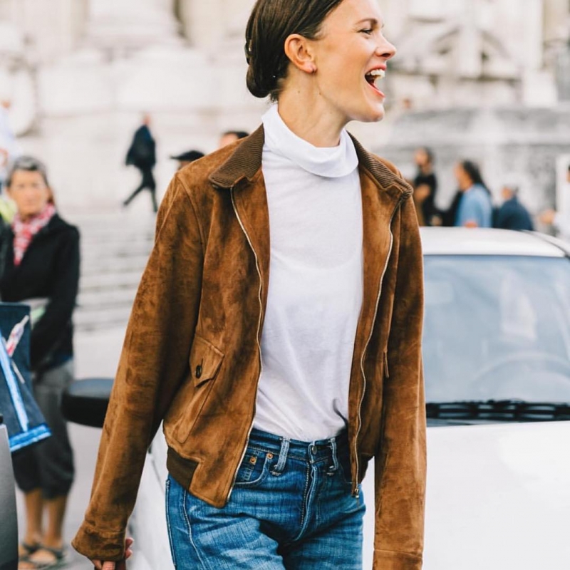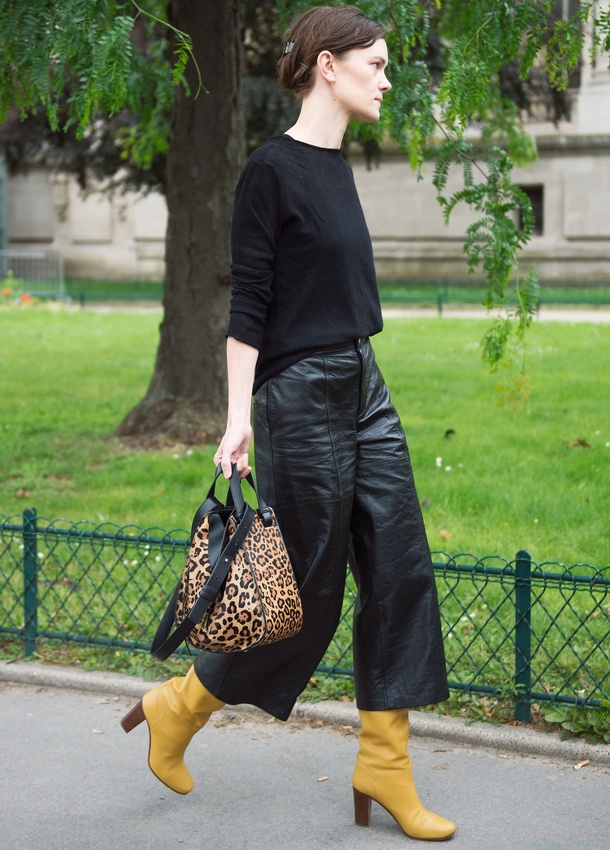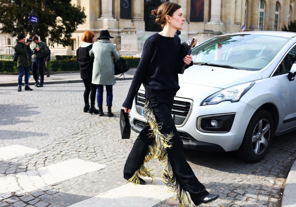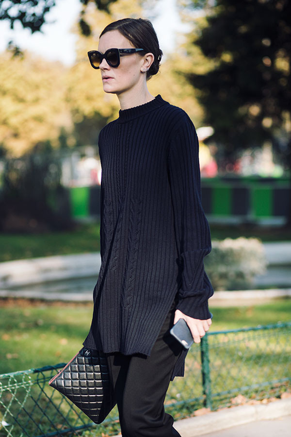 Corser un classique imprimé à petits carreaux noir et blanc en lui associant une pièce en cuir réglisse (voir ici). Dédramatiser une pièce minimaliste/conceptuelle au contact du duo jean roulotté sur la cheville/baskets blanches (voir ici). Délaisser le total look noir au profit du duo réglisse/bleu marine (voir ici et là). Réussir à dénicher une combi zippé kaki, qu'elle portera aussi bien en ville avec un sac à main bordeaux qu'en vacances avec une paire de baskets (voir ici). Booster le look baskets blanches/marinière/pantalon droit 7/8 en troquant la marinière contre un top rayé un brin plus complexe (voir ici). Travailler le look noir et blanc de manière faussement classique (voir ici). Porter ses chemises liquettes oversize glissées sur le devant du jean, déboutonnées sur le haut et légèrement basculées vers l'arrière (voir ici). Faire des infidélités aux sempiternels jeans slims en leur préférant des jeans droits légèrement taille haute et courts sur la cheville (voir ici). Egayer une tenue minimaliste par des bijoux forts (voir ici et là). Troquer son perfecto réglisse contre un blouson en daim marron, qui se mariera à merveille au jaune ou au bordeaux de saison (voir ici). Dérider ses tenues les plus simples via un accessoire inattendu (voir ici).