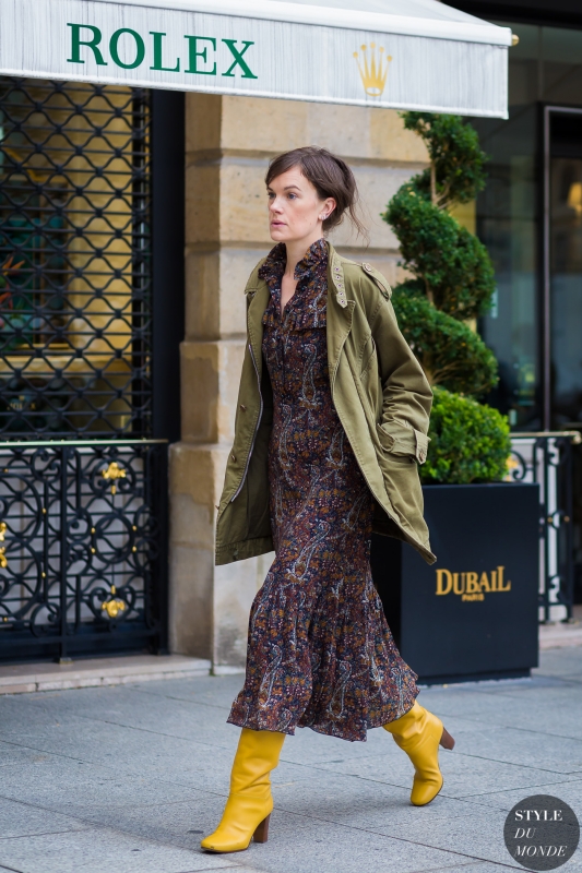 Manifestement elle aime beaucoup ses bottes jaunes et elle a bien raisons, elles sont juste parfaites ! À cause du fait qu'elle n'hésite pas à reporter ses pièces favorite, ses looks sont beaucoup plus inspirants que celle d'une quelconque fashionista arborant des total looks prêtés par les marques.